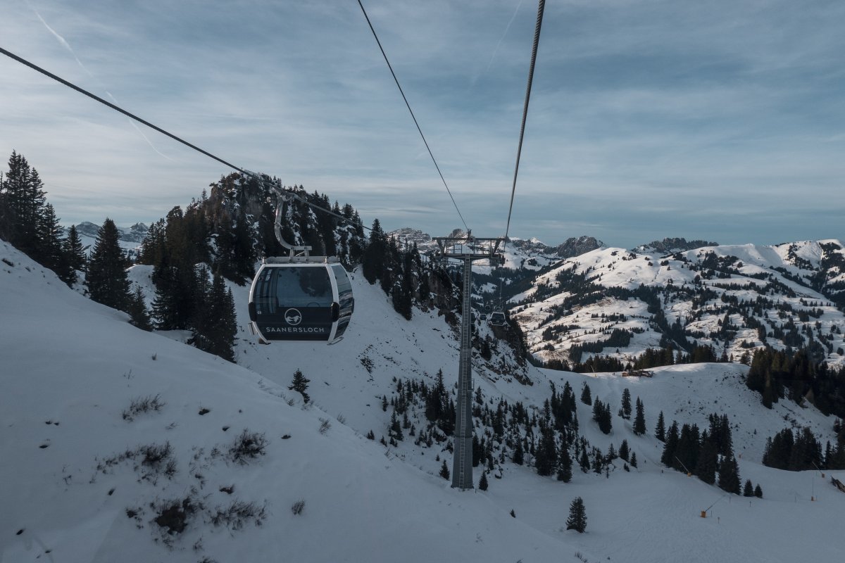 Bilderserie der neuen Saanerslochgratbahn von Garaventa aus dem Jahr 2018. Die Anlage bildet die zentrale Achse im Skigebiet Schönried-Saanenmöser-Zweisimmen und ist eine der strategisch wichtigsten Bahnen der gesamten Region.