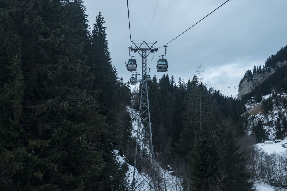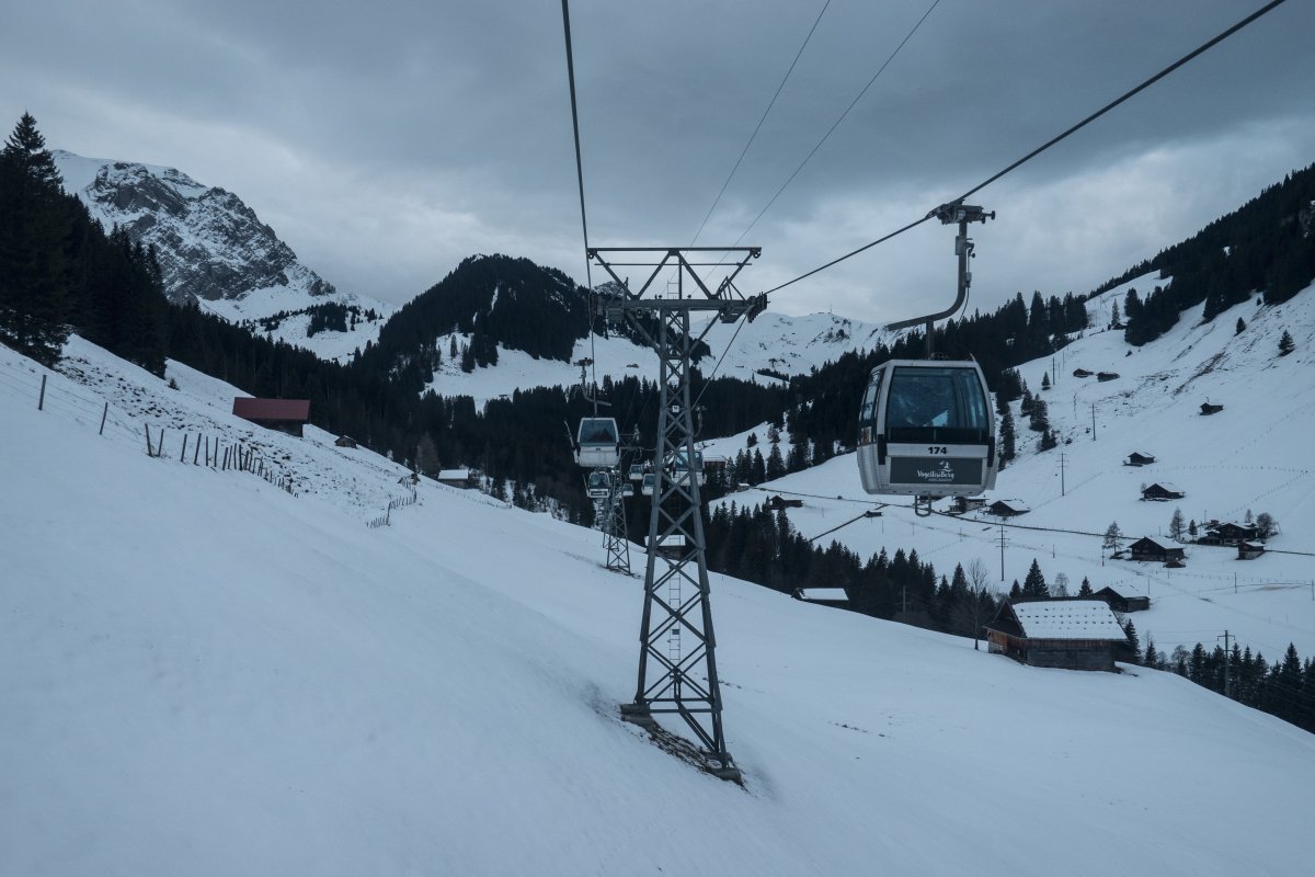 Eine Runde durch das mittlerweile vollständig modernisierte Skigebiet Adelboden-Lenk mit seinen zahlreichen kuppelbaren Anlagen von Garaventa und Leitner. Technisch spannender ein Ausflug zur Engstligenalp mit ihrem interessanten Verbindungslift von Habegger.