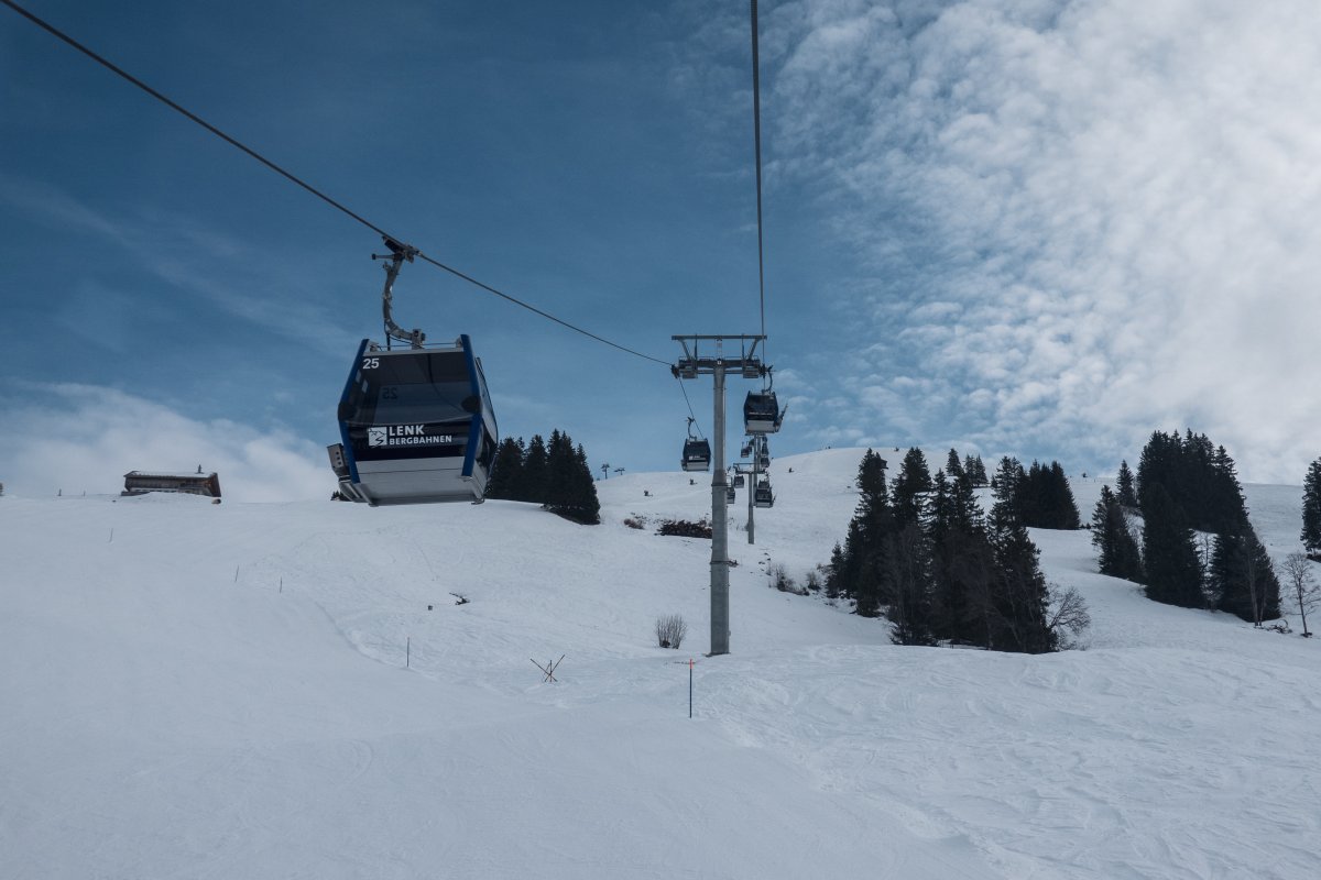 Eine Runde durch das mittlerweile vollständig modernisierte Skigebiet Adelboden-Lenk mit seinen zahlreichen kuppelbaren Anlagen von Garaventa und Leitner. Technisch spannender ein Ausflug zur Engstligenalp mit ihrem interessanten Verbindungslift von Habegger.