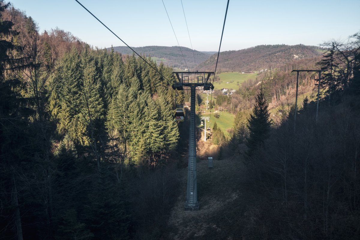 Eine Kabinenbahn der Firma Garaventa erschliesst das Gebiet Wasserfallen im Basler Jura. Anders als ihr Vorgänger von Müller erschliesst sie heute kein Skigebiet mehr, dafür aber diverse andere Freizeitattraktionen.