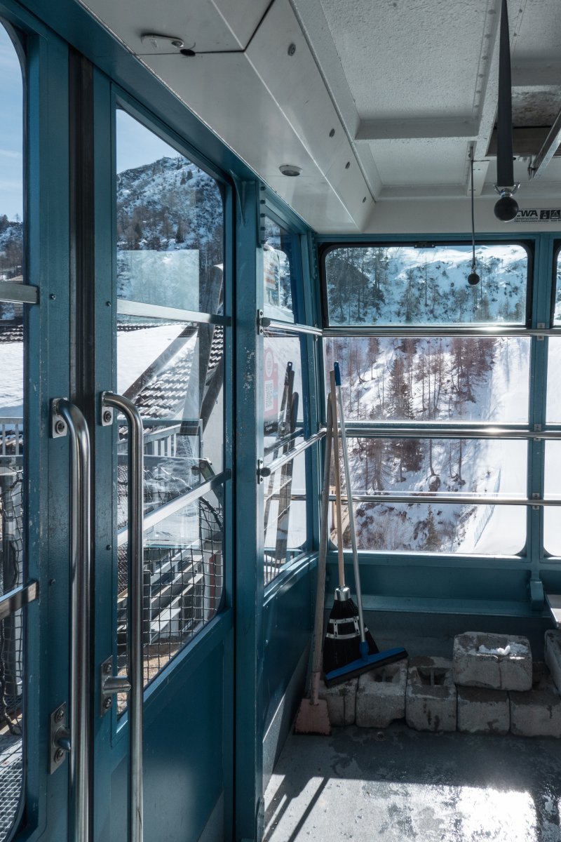 Kabine der Luftseilbahn Pesciüm-Sasso della Boggia, März 2023
