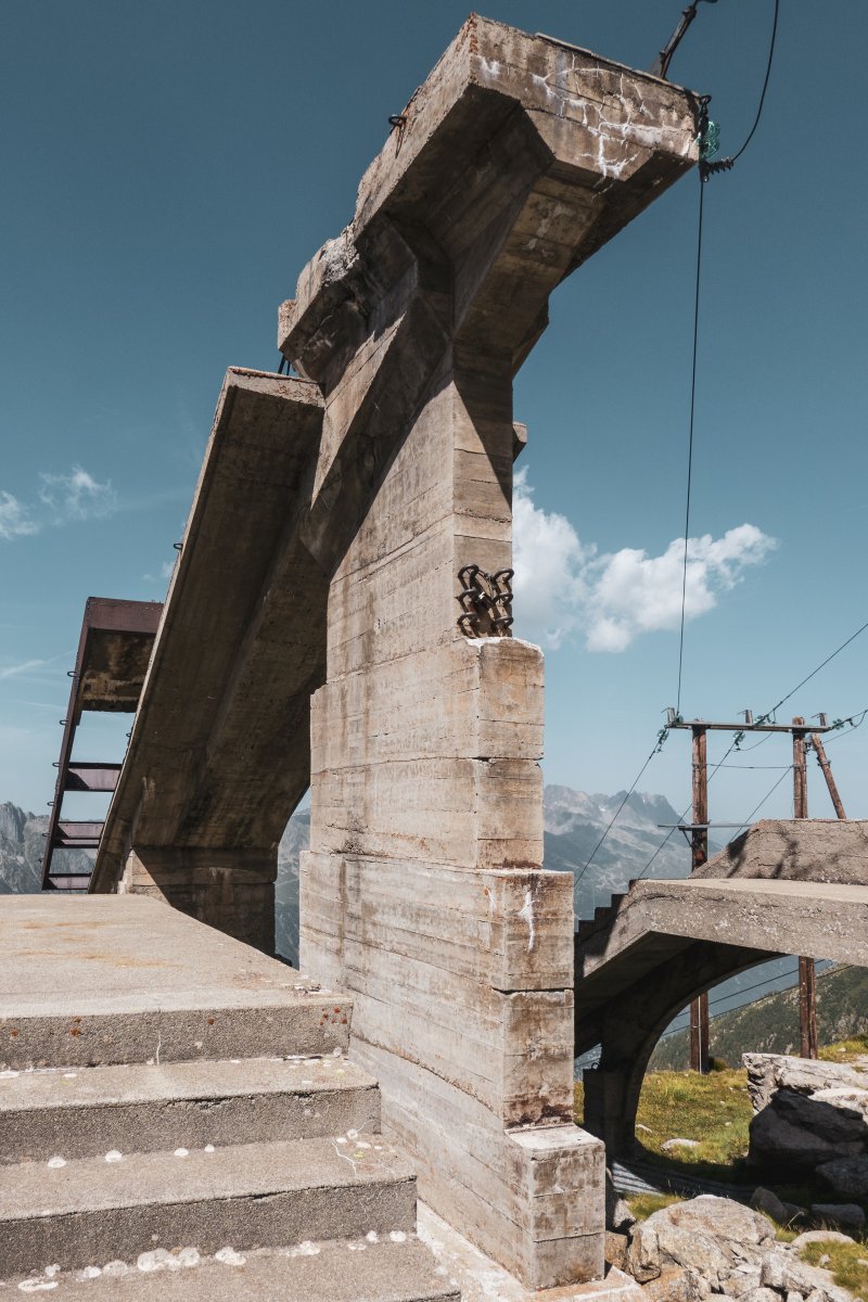 Überreste der Materialseilbahn Les Glaciers-Col du Midi, August 2023