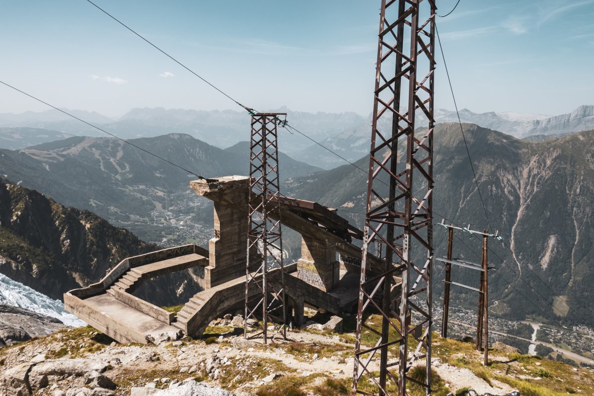 Eine Reise mit der Pendelbahn auf den Aussichtsgipfel Le Brévent oberhalb von Chamonix, mit der ältesten Zweiersesselbahn Frankreichs zum Glacier des Bossons und zu Fuss zu den Ruinen der Téléphérique des Glaciers an der Aiguille du Midi.