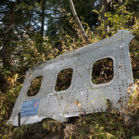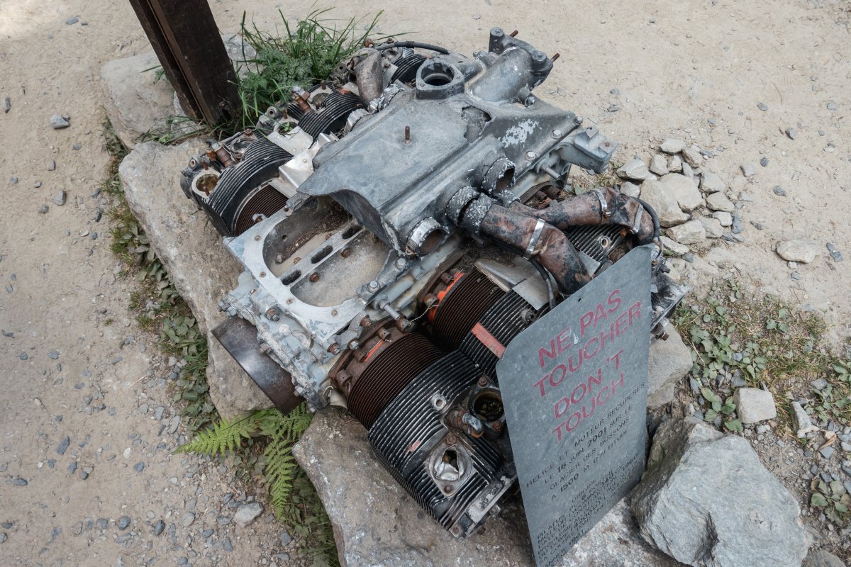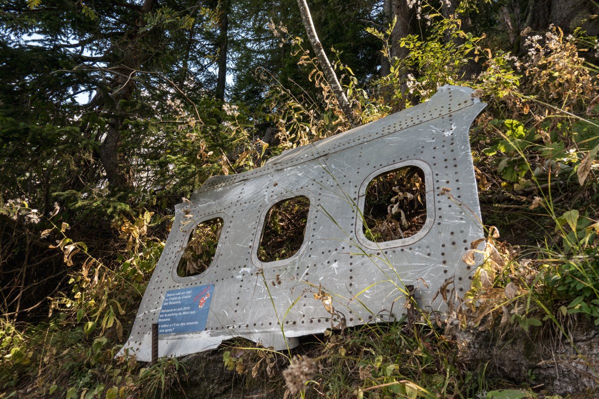 Flugzeugteile einer abgestürzten Maschine am Glacier des Bossons, August 2023