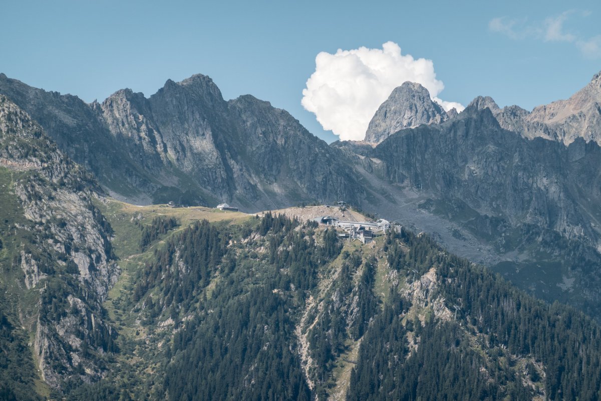 Eine Reise mit der Pendelbahn auf den Aussichtsgipfel Le Brévent oberhalb von Chamonix, mit der ältesten Zweiersesselbahn Frankreichs zum Glacier des Bossons und zu Fuss zu den Ruinen der Téléphérique des Glaciers an der Aiguille du Midi.