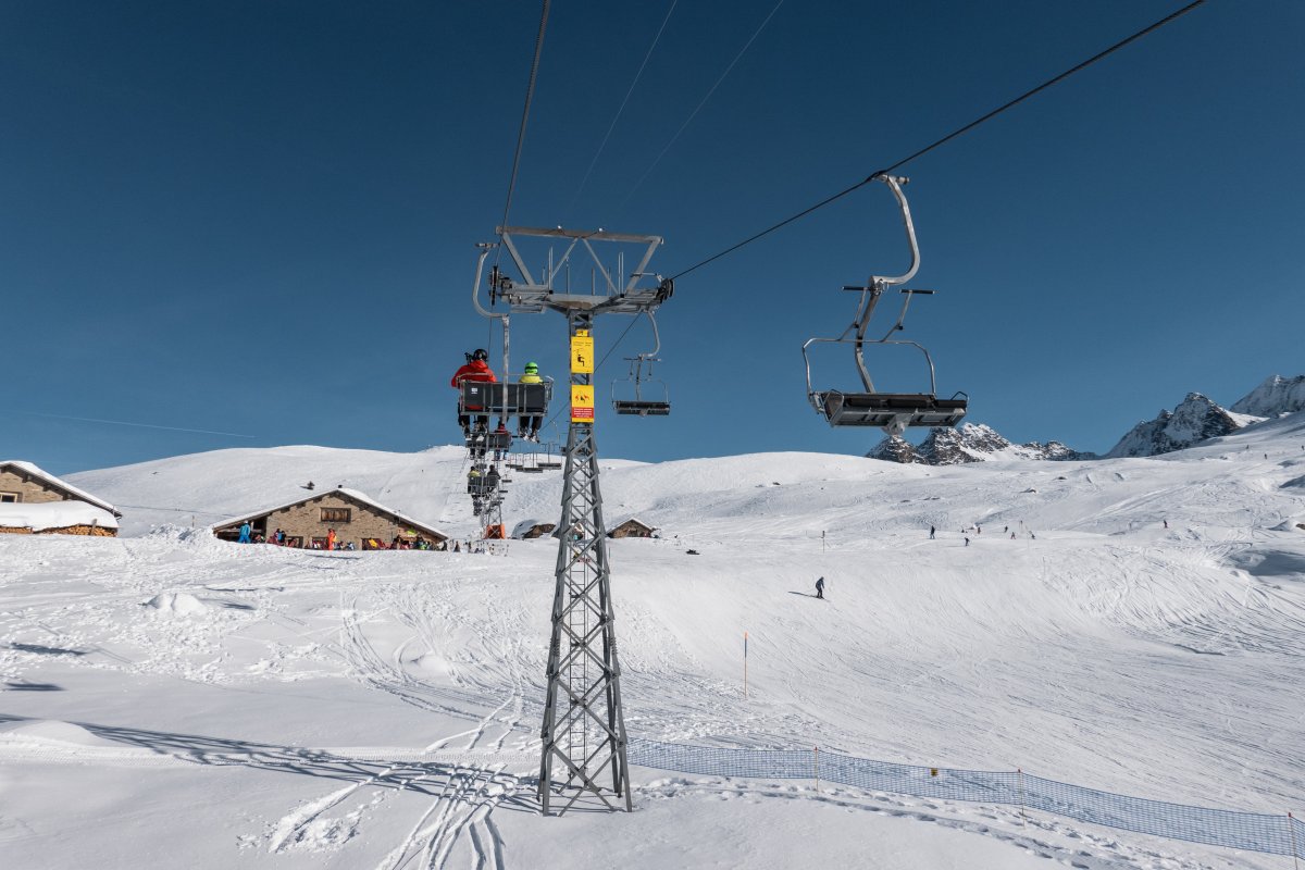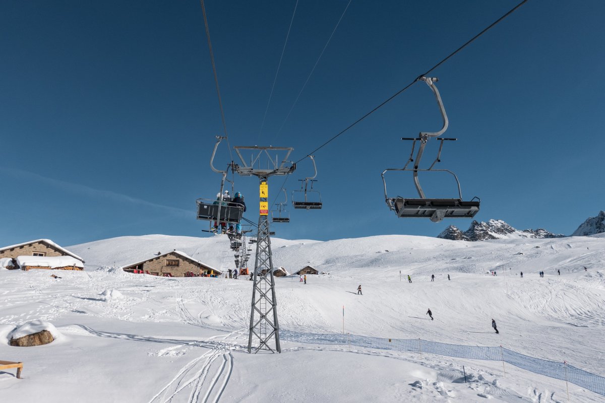 Zwei Kabinenbahnen, zwei Sesselbahnen und ein nostalgischer Kurzbügel-Schlepplift erschliessen die Pisten rund um die Tanatzhöhi und die Tamboalp oberhalb von Splügen.