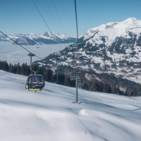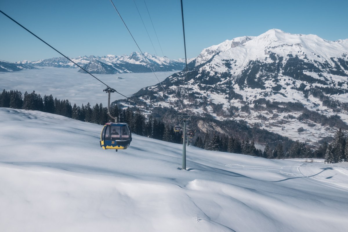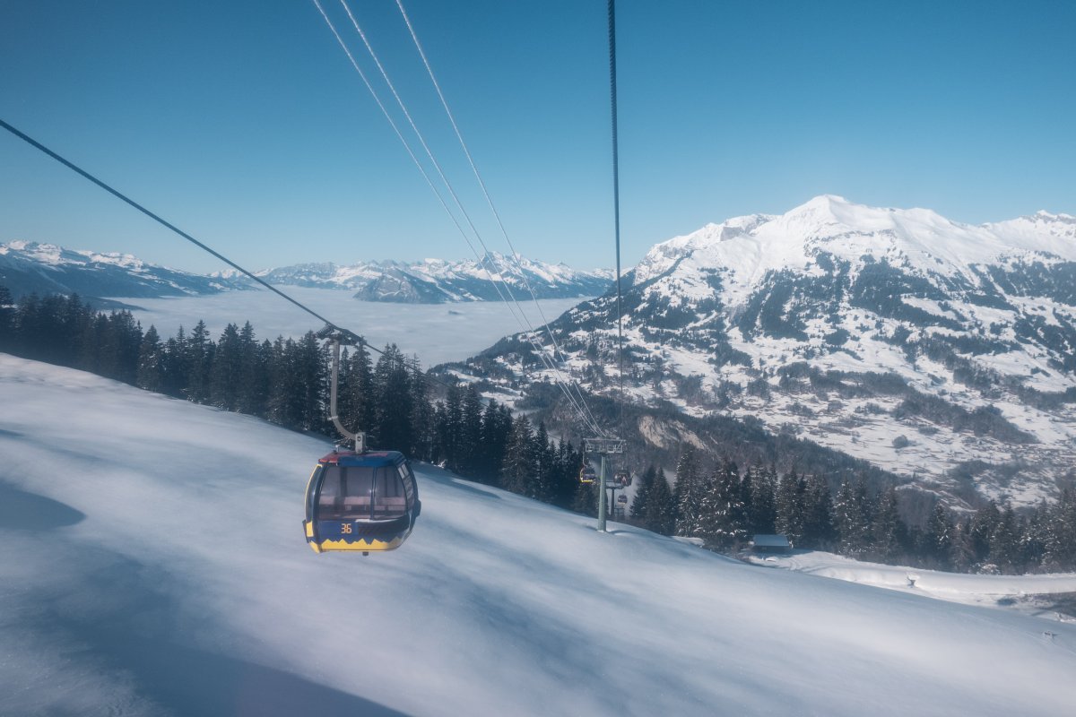 Skigebiet Grüsch-Danusa mit zwei Kabinenbahnen von Leitner, Schleppliften von Leitner und Städeli, sowie einer Sesselbahn von Baco-Poma.