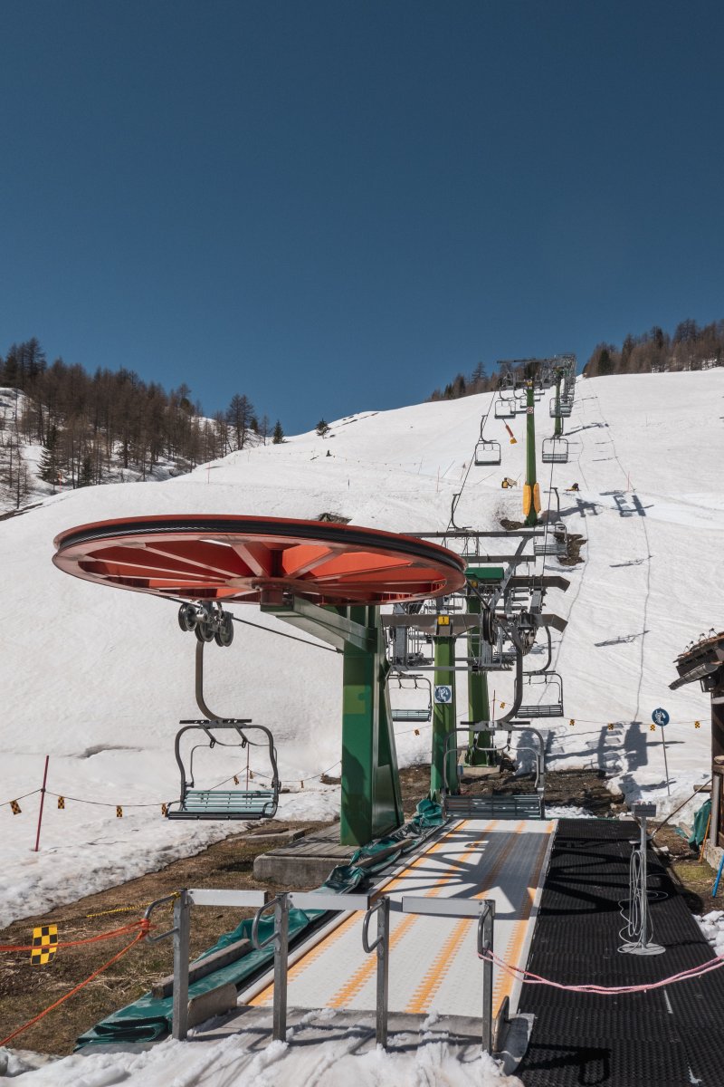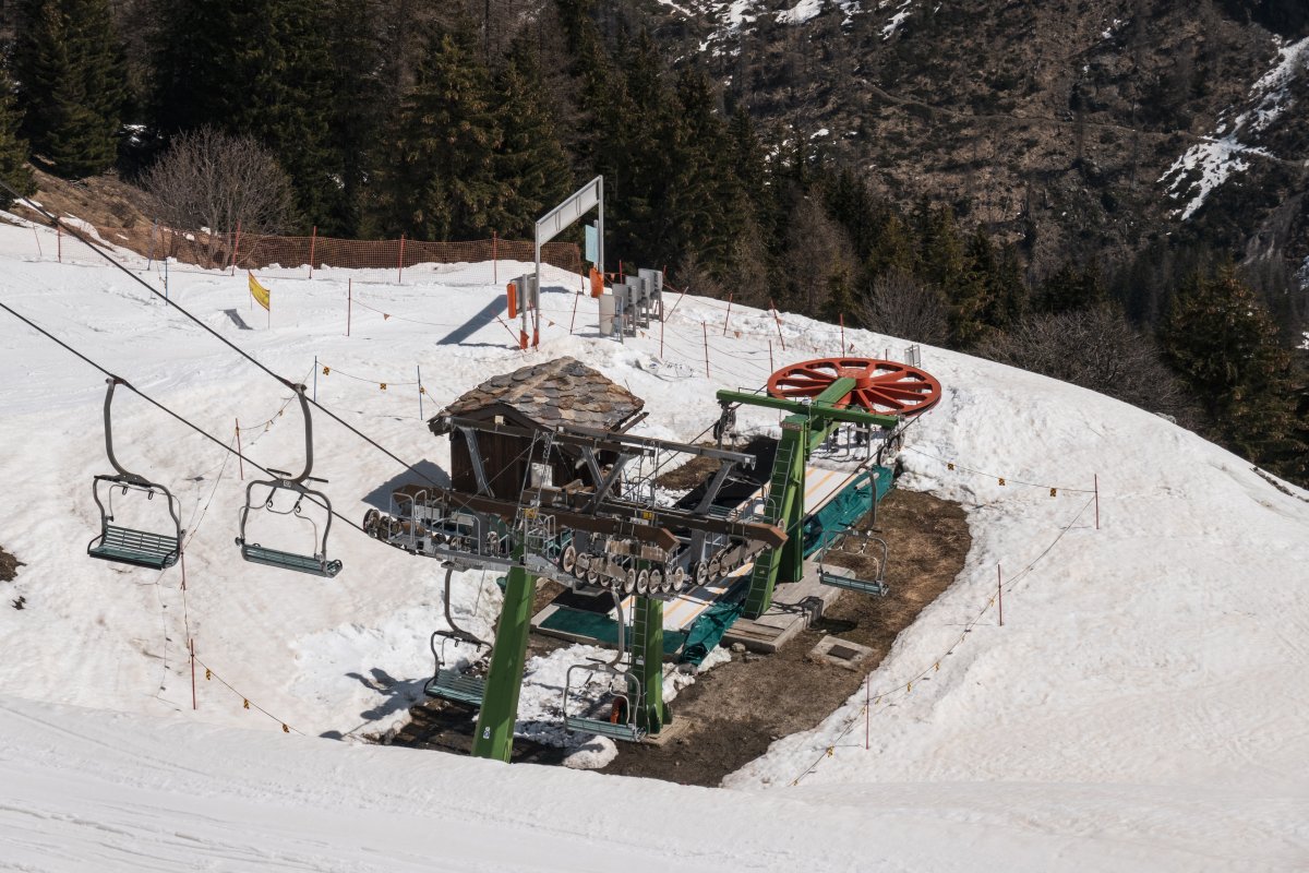 Talstation der Sesselbahn Arnouvaz, April 2024
