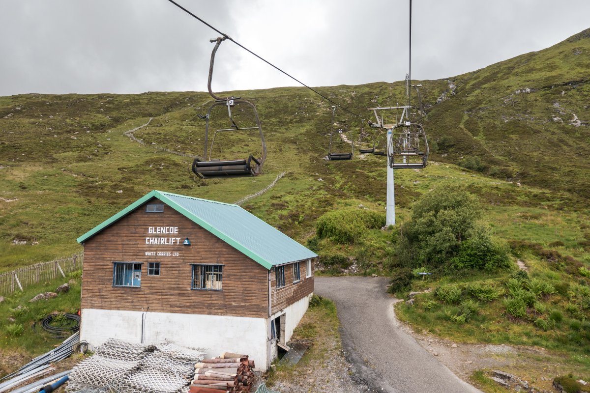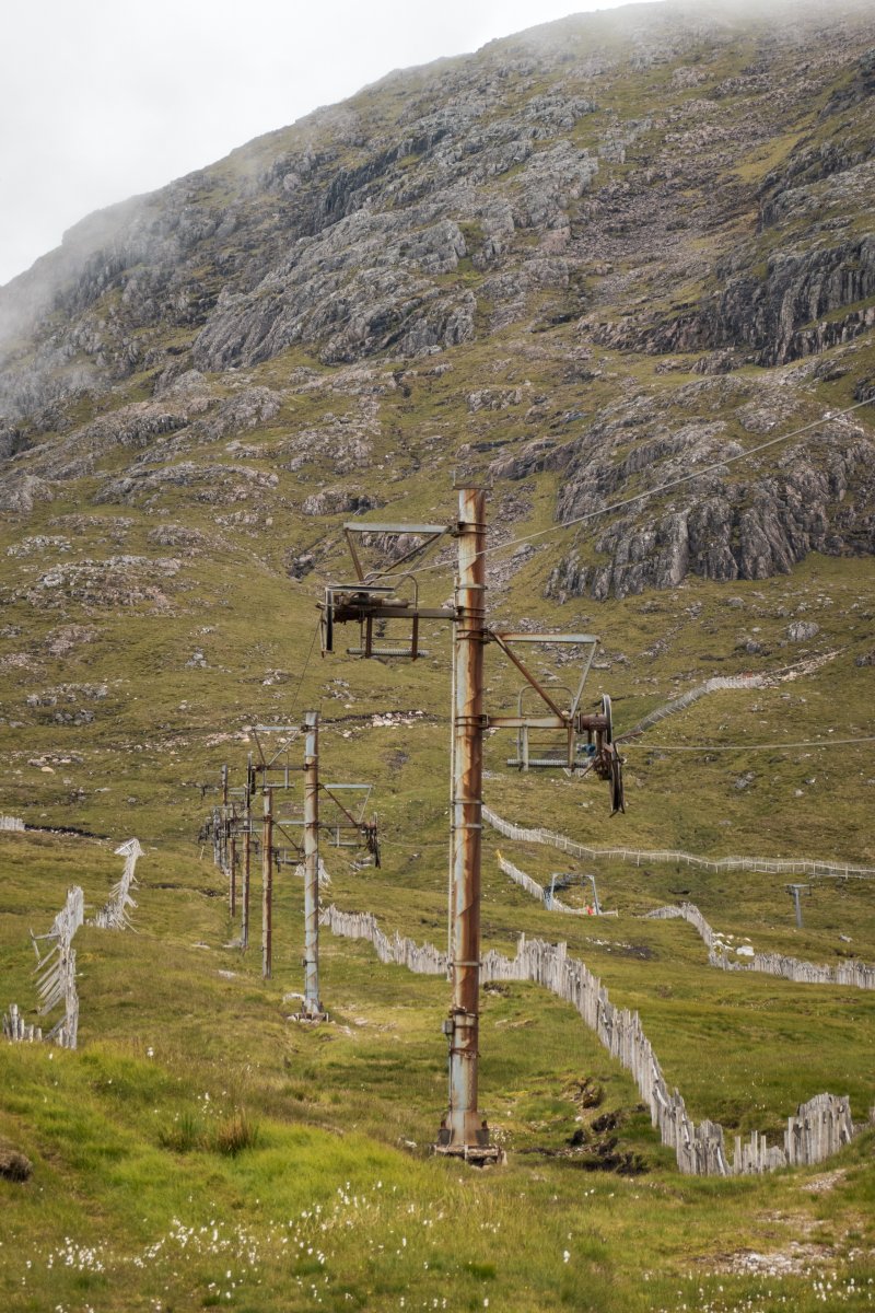 Das Skigebiet Glencoe inmitten der Highlands hat so einiges an interessanten Seilbahnen zu bieten, darunter die letzte Einersesselbahn Schottlands.