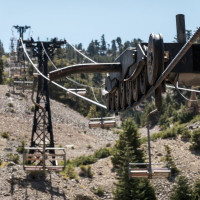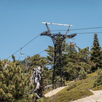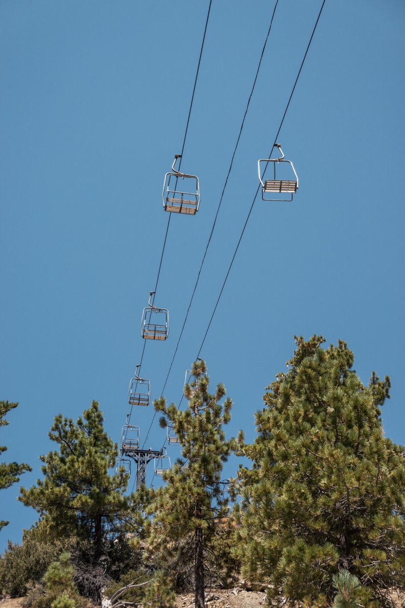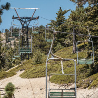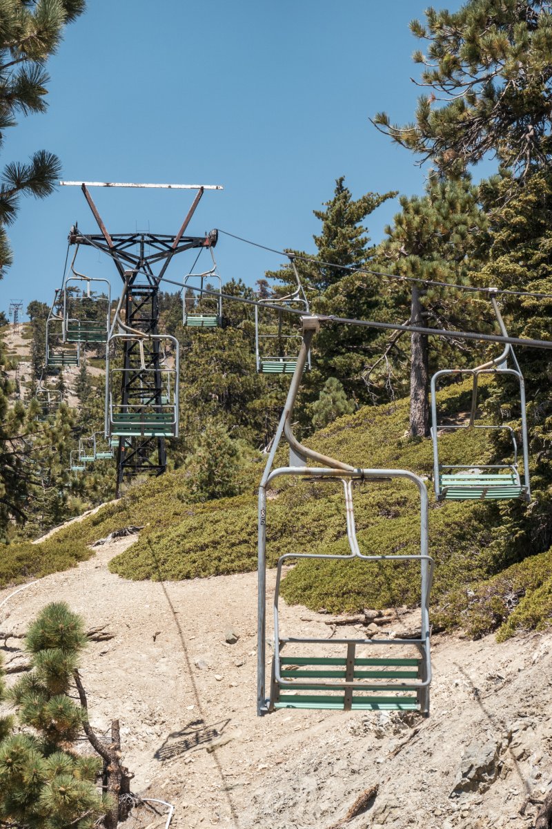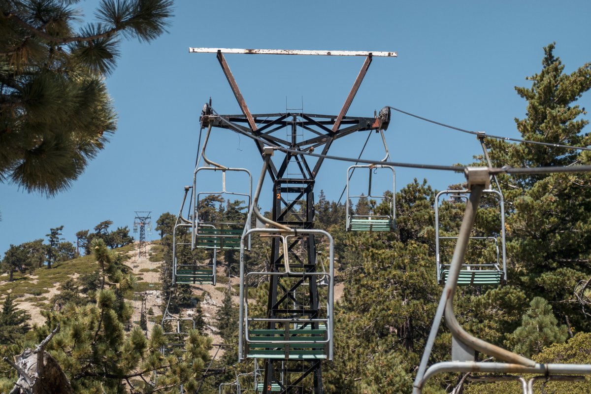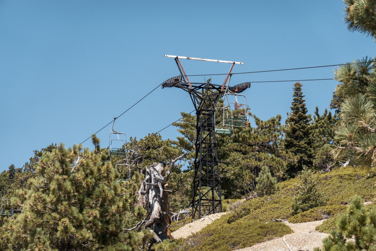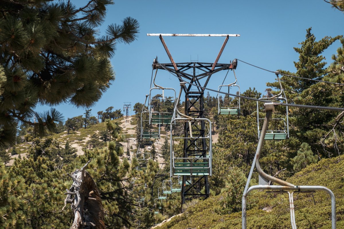 Vier historische Sesselbahnen mit Bestandteilen von Ringer und Müller erschliessen das kleine Skigebiet Mount Baldy im Los Angeles National Forest.