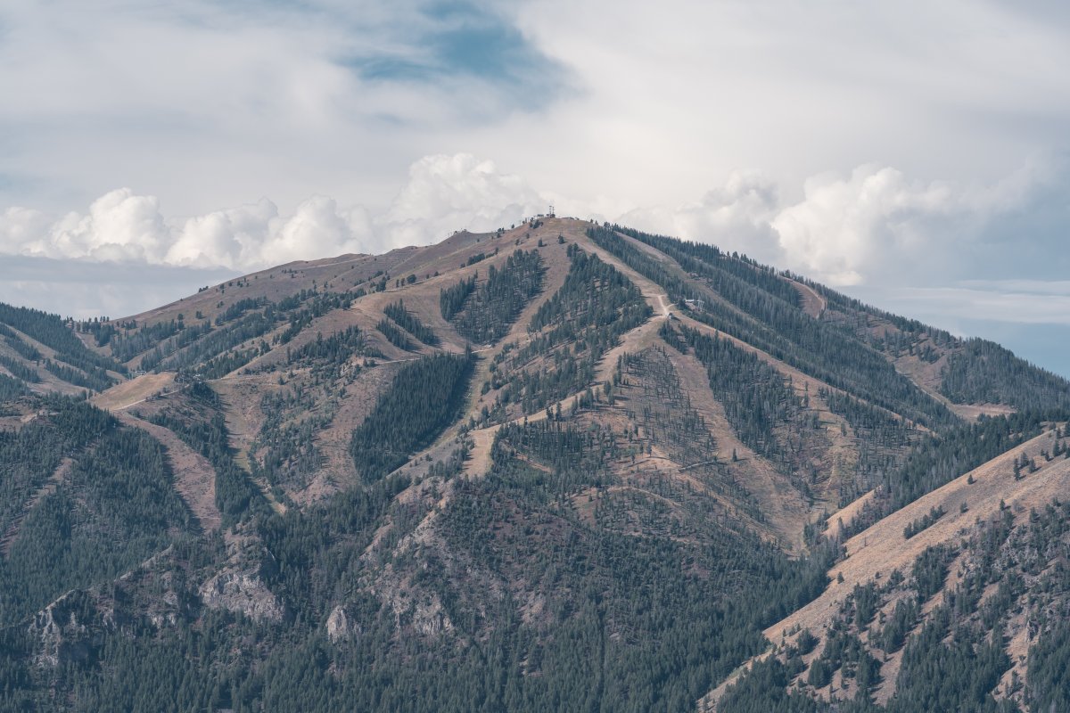 Blick zum Skigebiet Bald Mountain in Sun Valley, September 2024