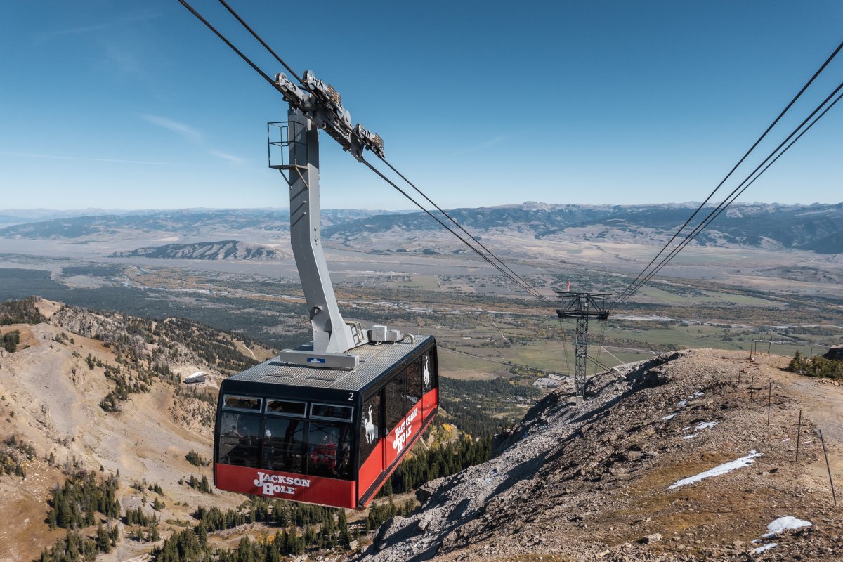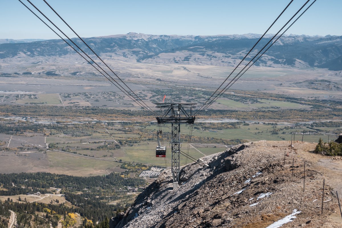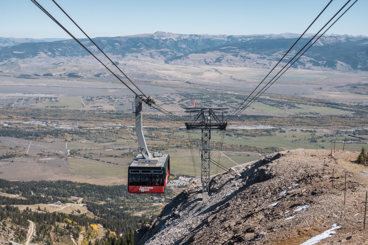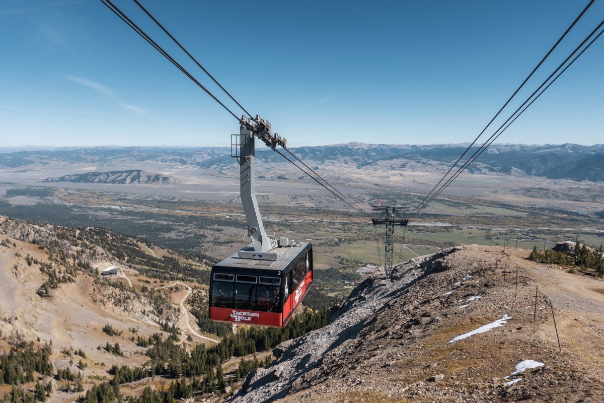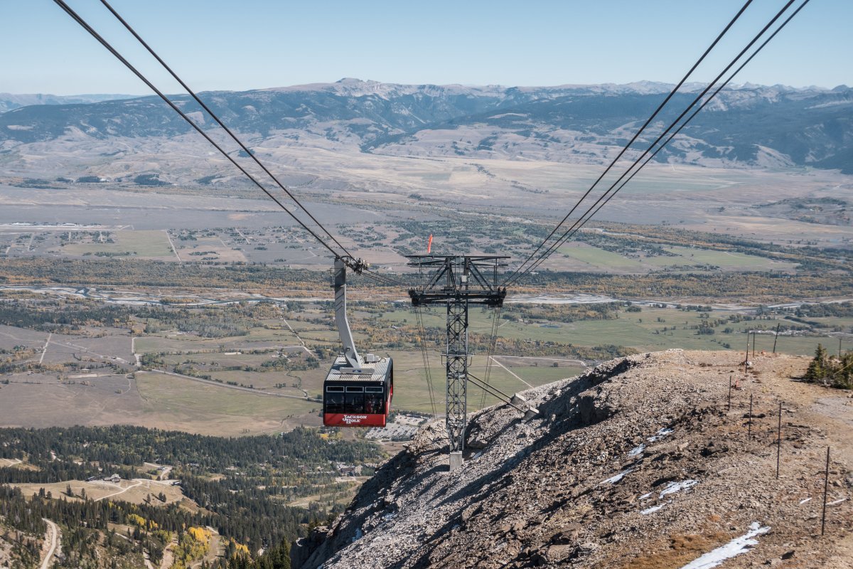 Mit knapp vier Kilometern Länge und über 1200 Höhenmetern ist die Seilbahn zum Rendezvous Mountain im Skigebiet Jackson Hole im Bundesstaat Wyoming eine der beeindruckendesten auf dem nordamerikanischen Kontinent.