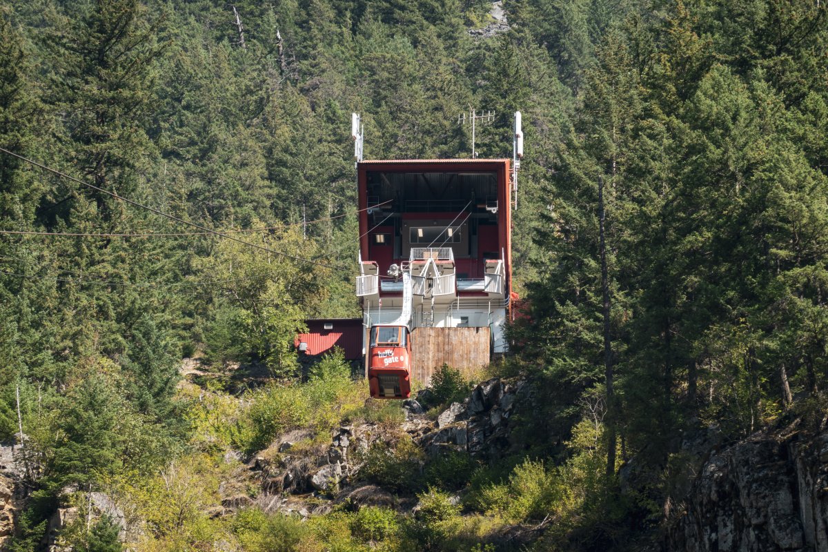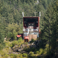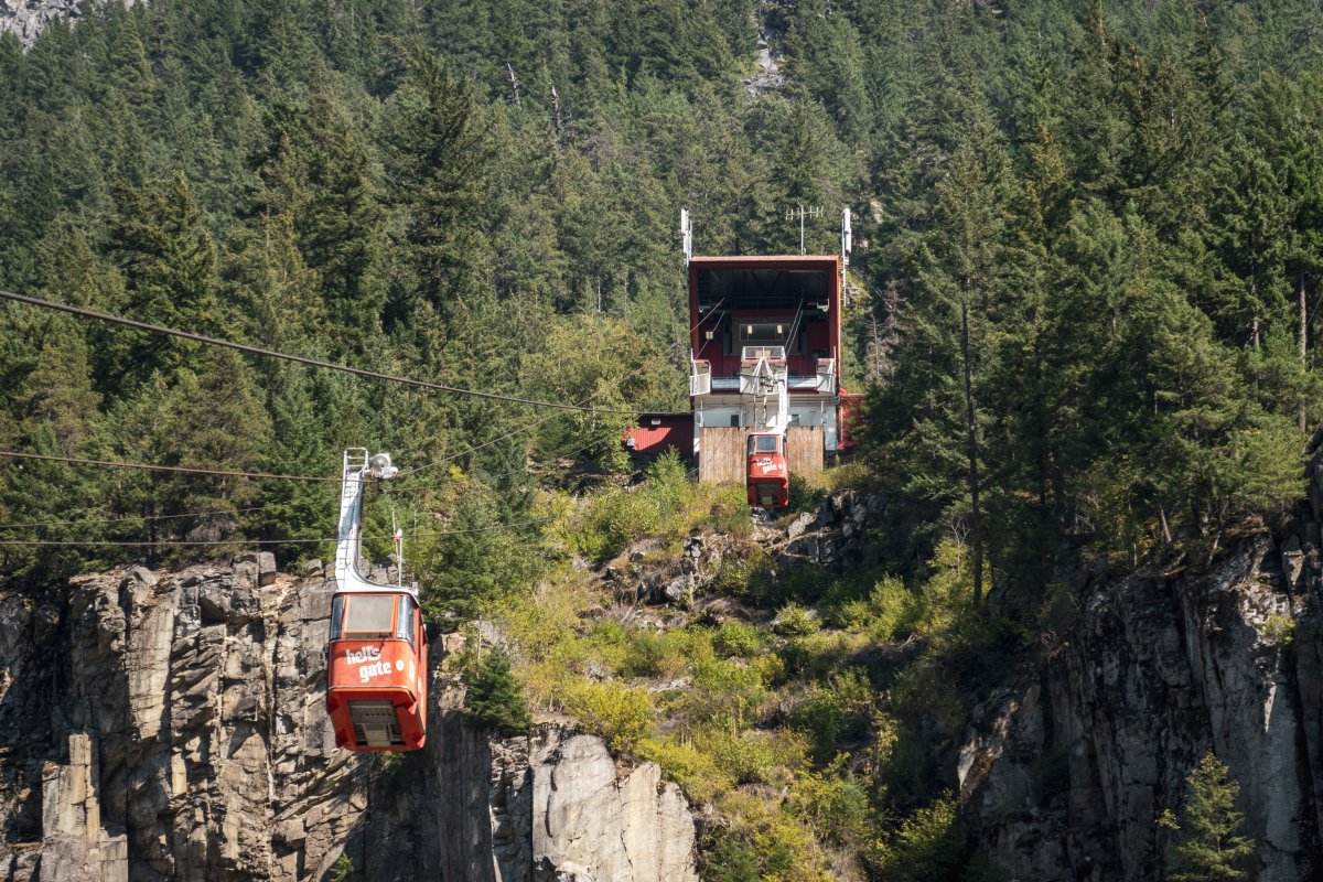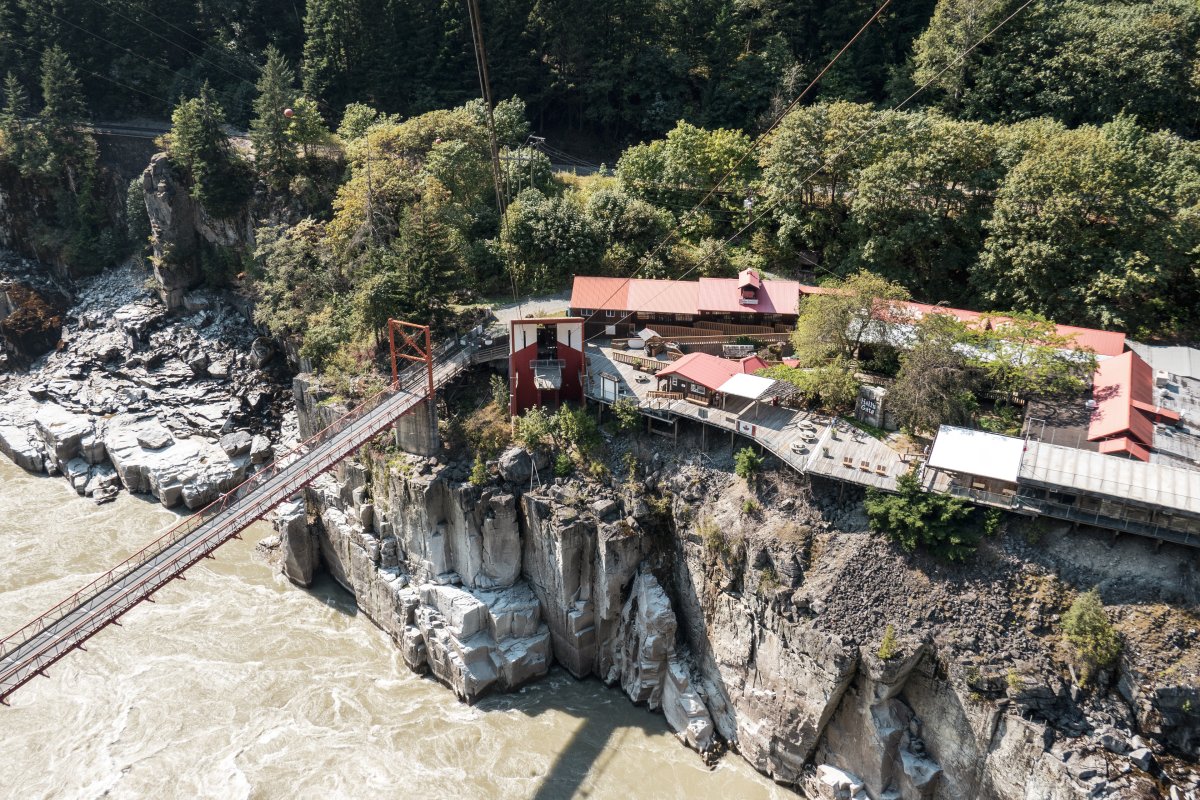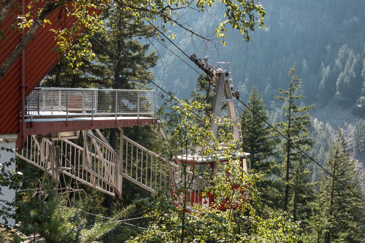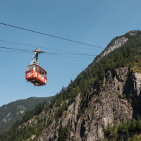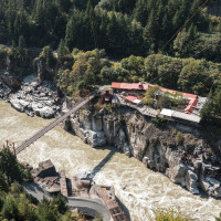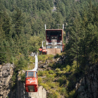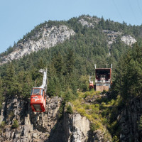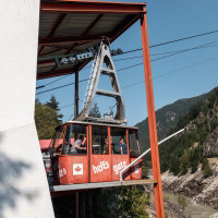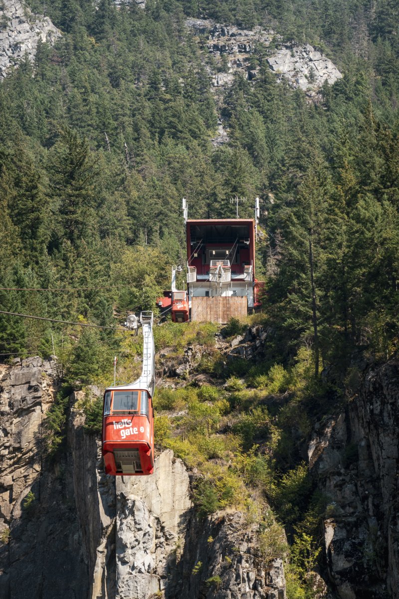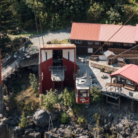 Eine kleine Pendelbahn von Habegger überquert den reissenden Fraser River zum Hell's Gate nordöstlich von Vancouver.