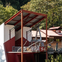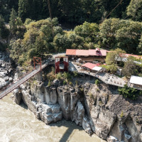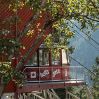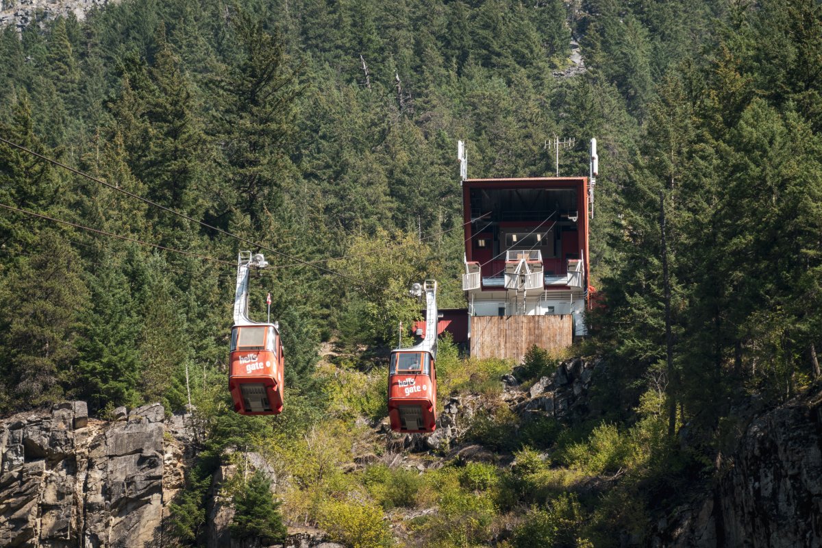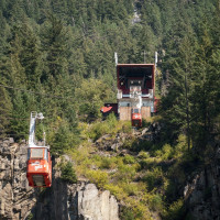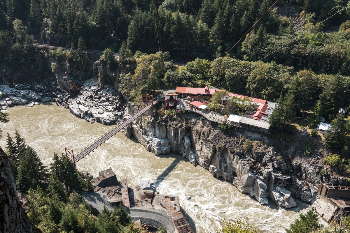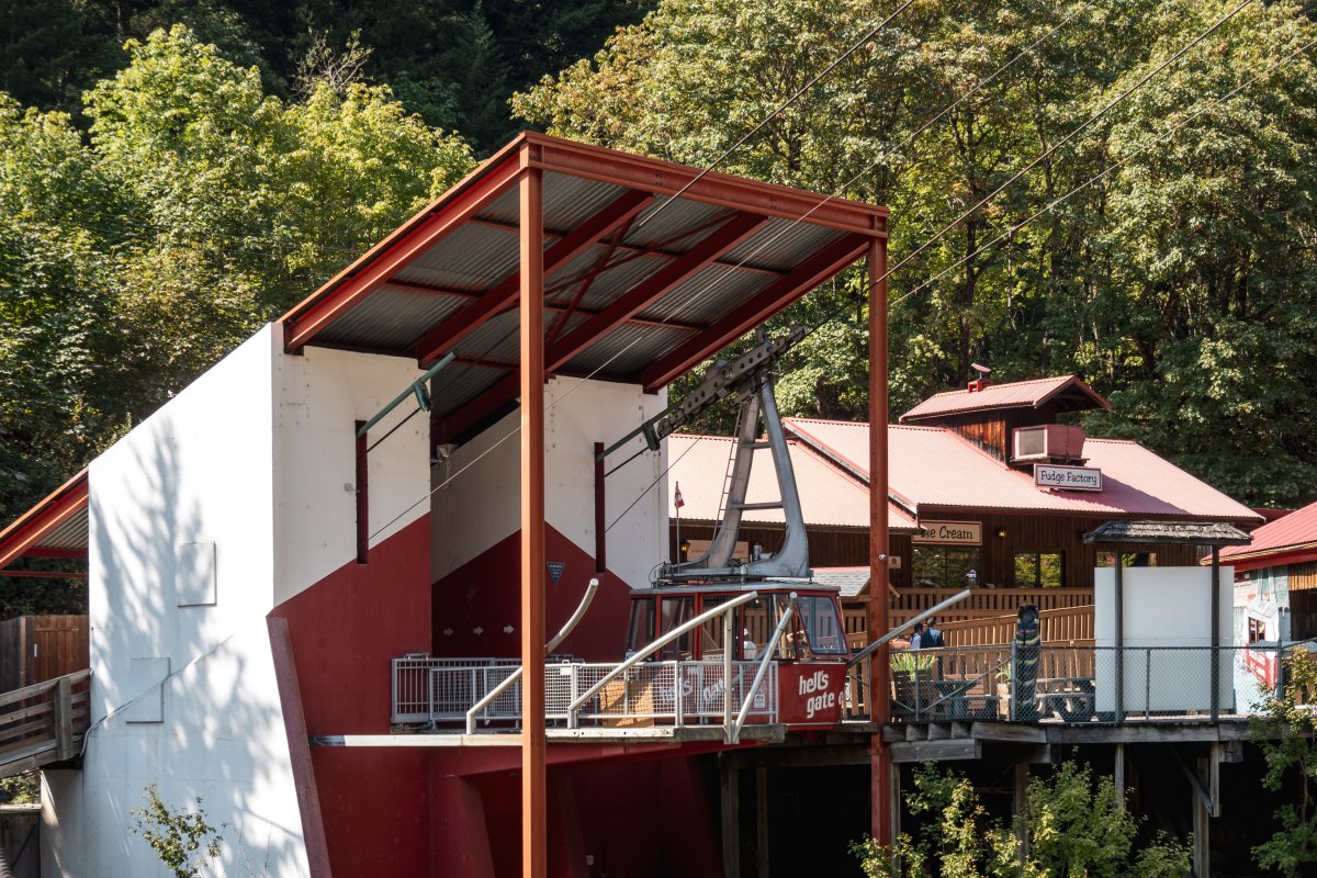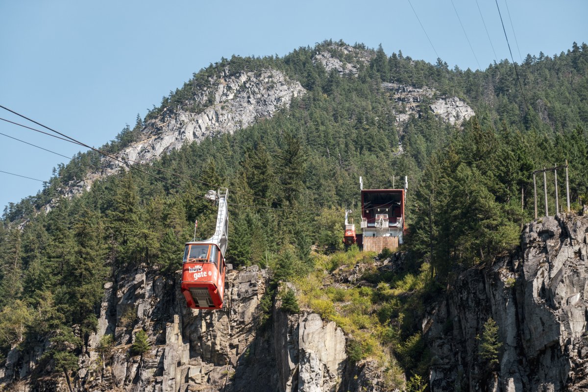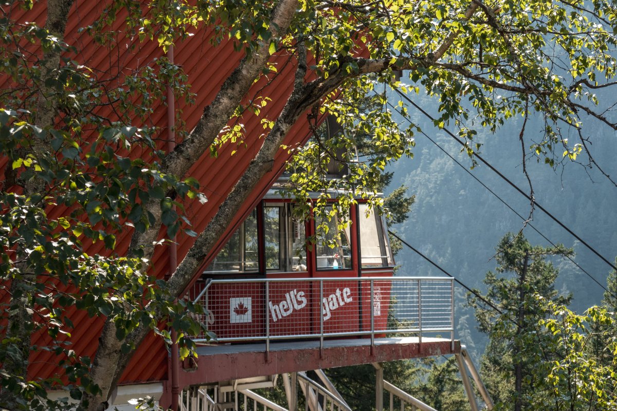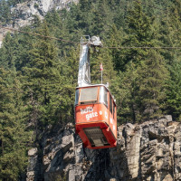 Eine kleine Pendelbahn von Habegger überquert den reissenden Fraser River zum Hell's Gate nordöstlich von Vancouver.