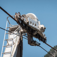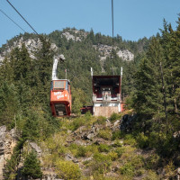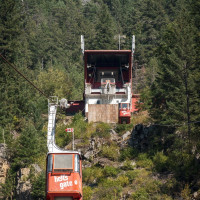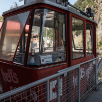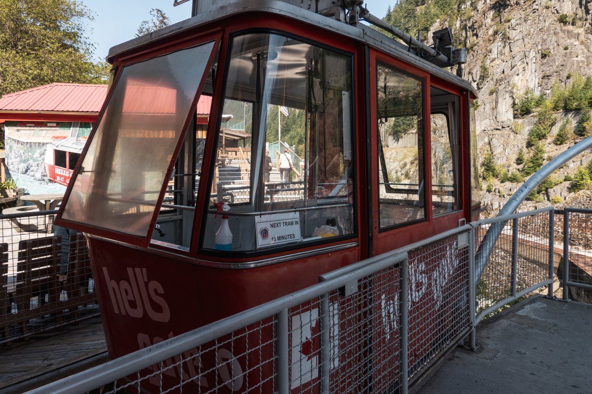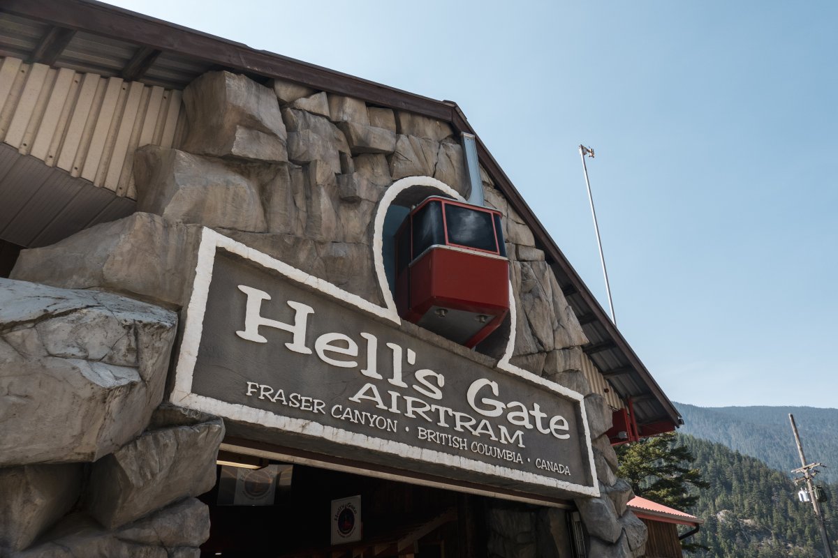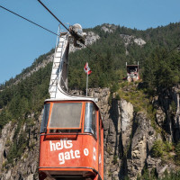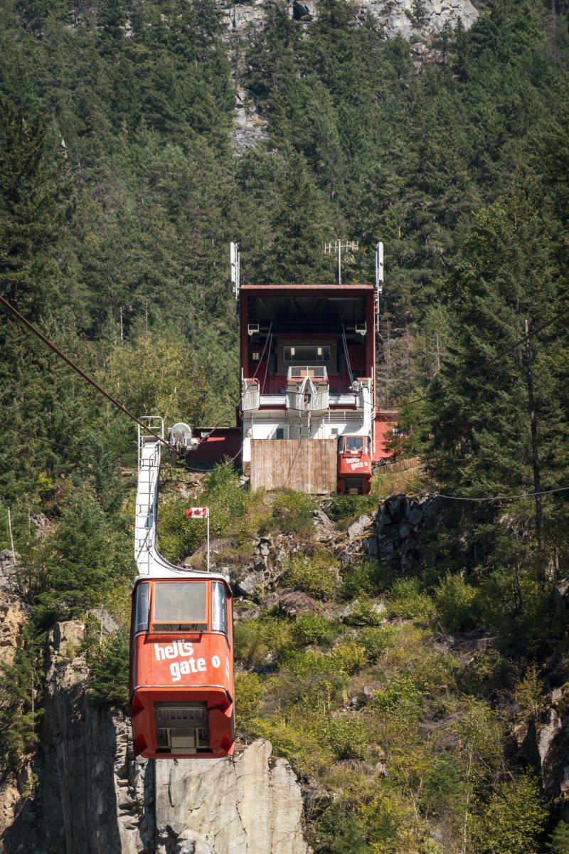 Eine kleine Pendelbahn von Habegger überquert den reissenden Fraser River zum Hell's Gate nordöstlich von Vancouver.