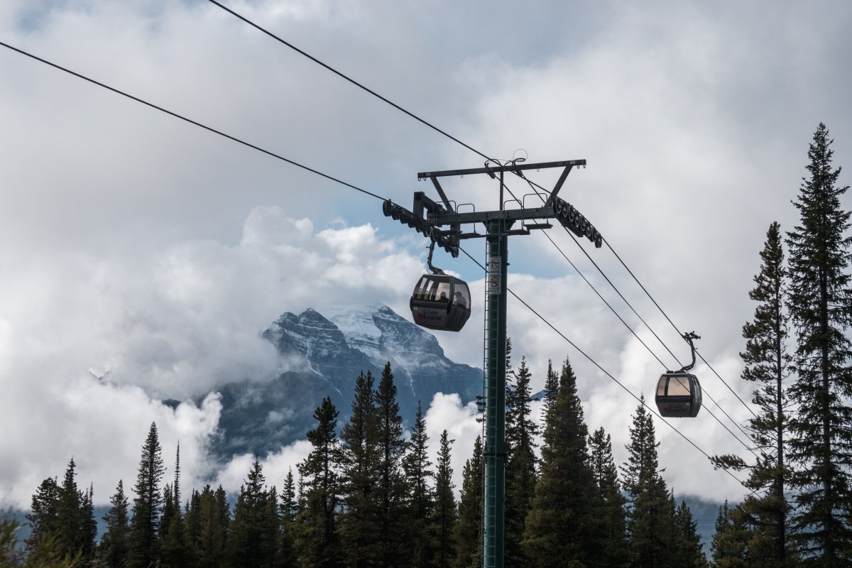 Lake Louise ist in erster Linie bekannt für seine malerischen Seen, doch auch auf ein Skigebiet trifft man hier. Im Sommer erleichtert eine Kombibahn von Leitner den Aufstieg zur Aussicht auf die umliegenden schroffen Gipfel.