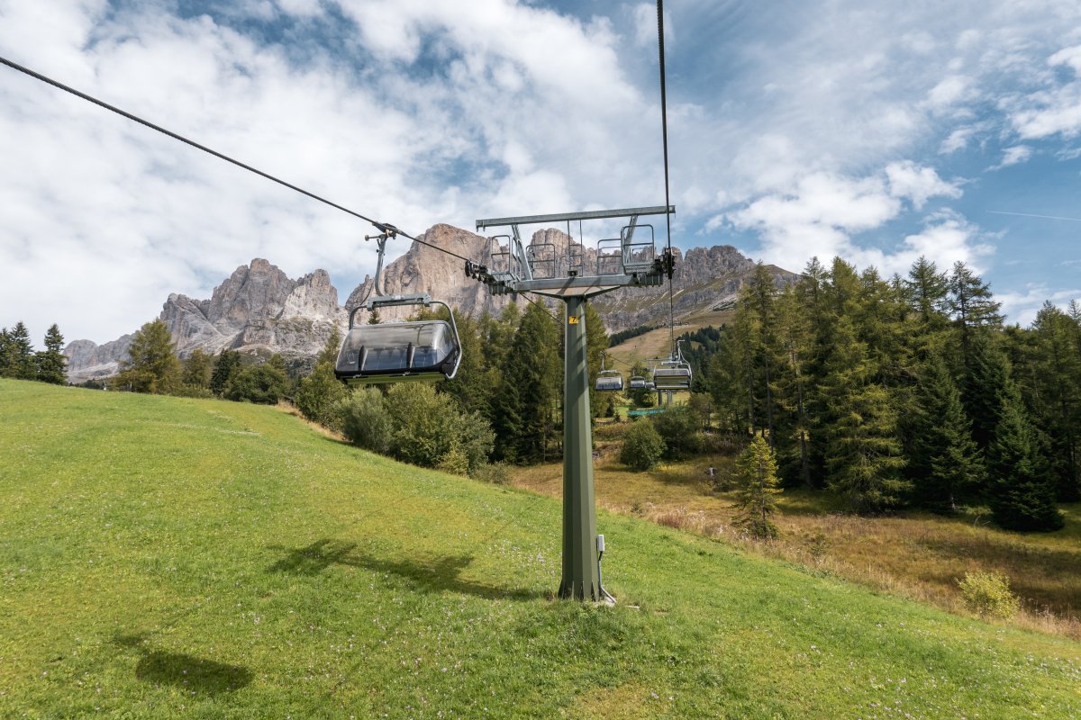Die Sesselbahn Paolina am Karersee ist auf den ersten Blick eine typische Anlage aus dem Hause Agamatic, kann aber mit einer technisch äusserst interessanten einseitigen Zwischenstation begeistern.