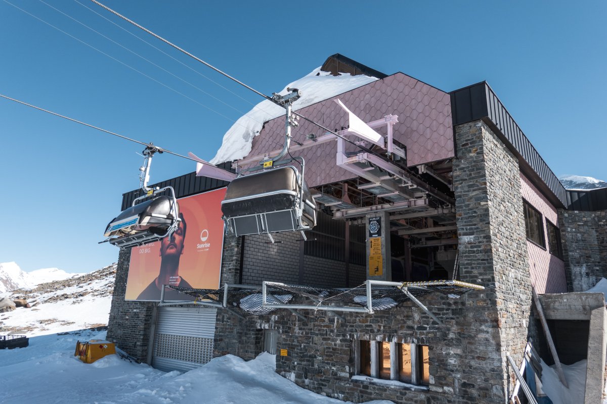 Talstation der ehemaligen Sesselbahn Sandiger Boden-Theodulgletscher, März 2026