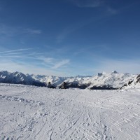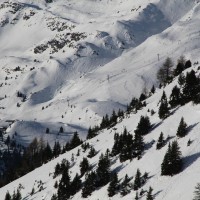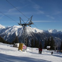 Mit ein wenig Laufen erreicht man einen Punkt auf dem Grat, von dem aus das Skigebiet von Carì sichtbar wird: Hier der Schlepplift Pro da Lei und die parallele Sesselbahn, Dezember 2010