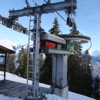 Carì mit der Sesselbahn Brusada im Wald, Dezember 2010
