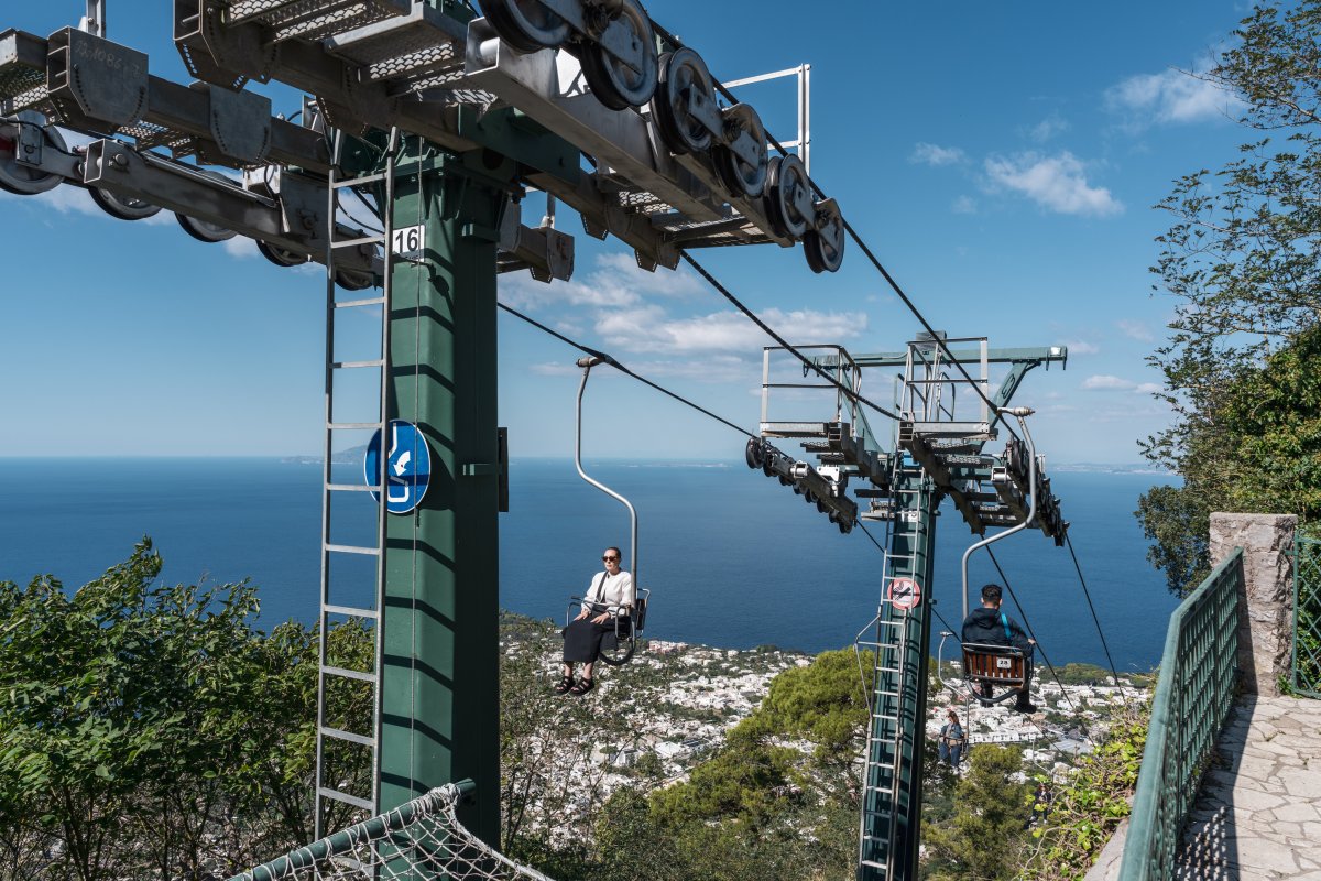 Eine Einersesselbahn von Leitner erschliesst am Golf von Neapel auf der Insel Capri den Monte Solaro mit Blick auf die Amalfiküste.Letzte Aktualisierung am 13.10.2025,