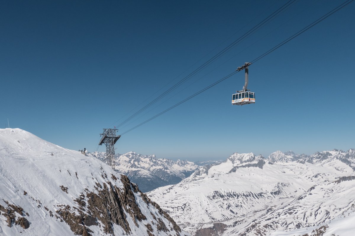 The Gurschen-Gemsstock ropeway is a 80-person Aerial Tramway in Andermatt and connects the valley station at 2222 m to the mountain station at 2955 m.