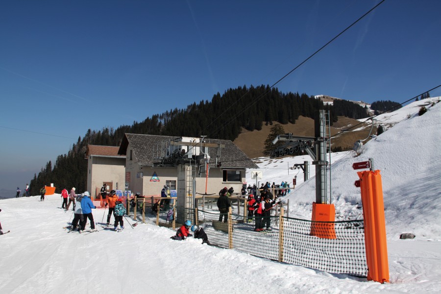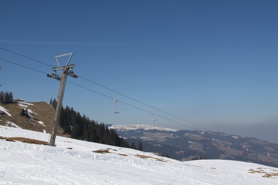 The Riggisalpboden ropeway is a 2-person Surface lift in Schwarzsee and connects the valley station at 1358 m to the mountain station at 1586 m.
