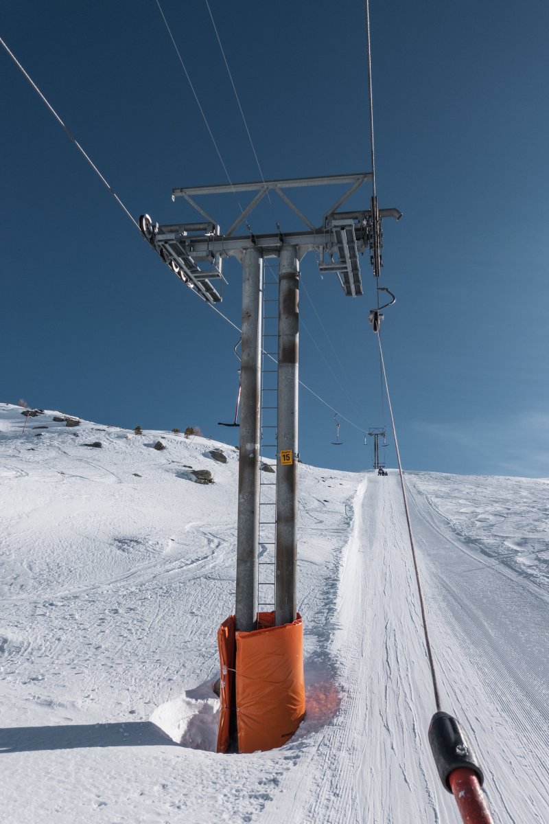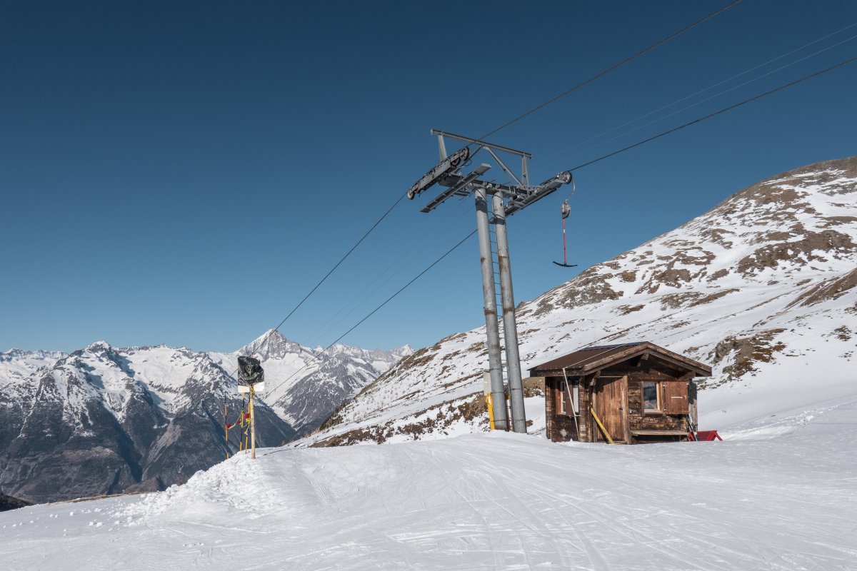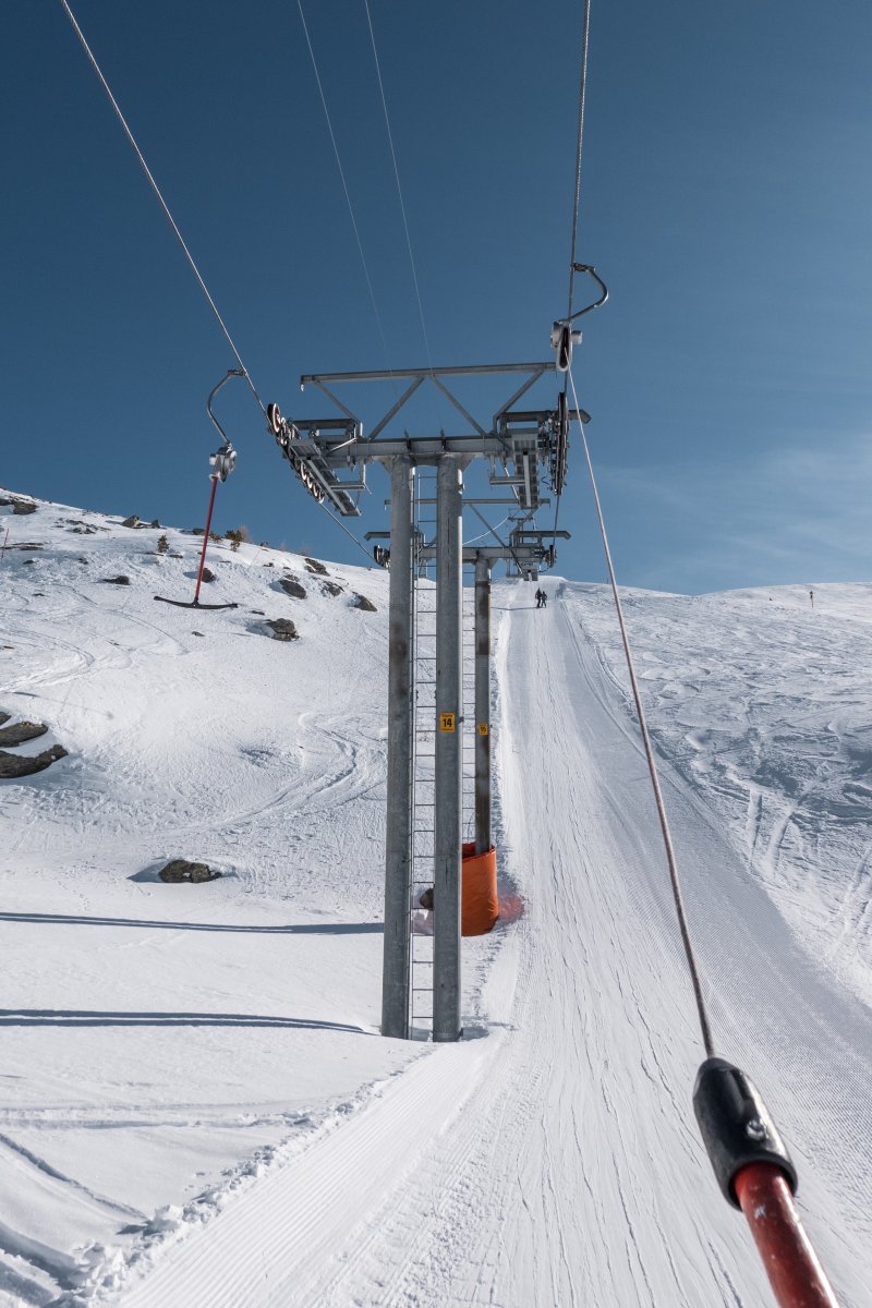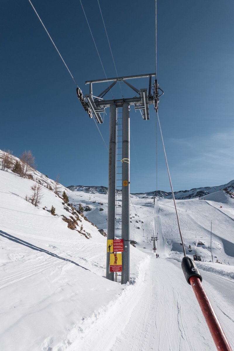 The Unter Sennturm-Seefeld ropeway is a 2-person Surface lift in Unterbäch and connects the valley station at 2000 m to the mountain station at 2443 m.