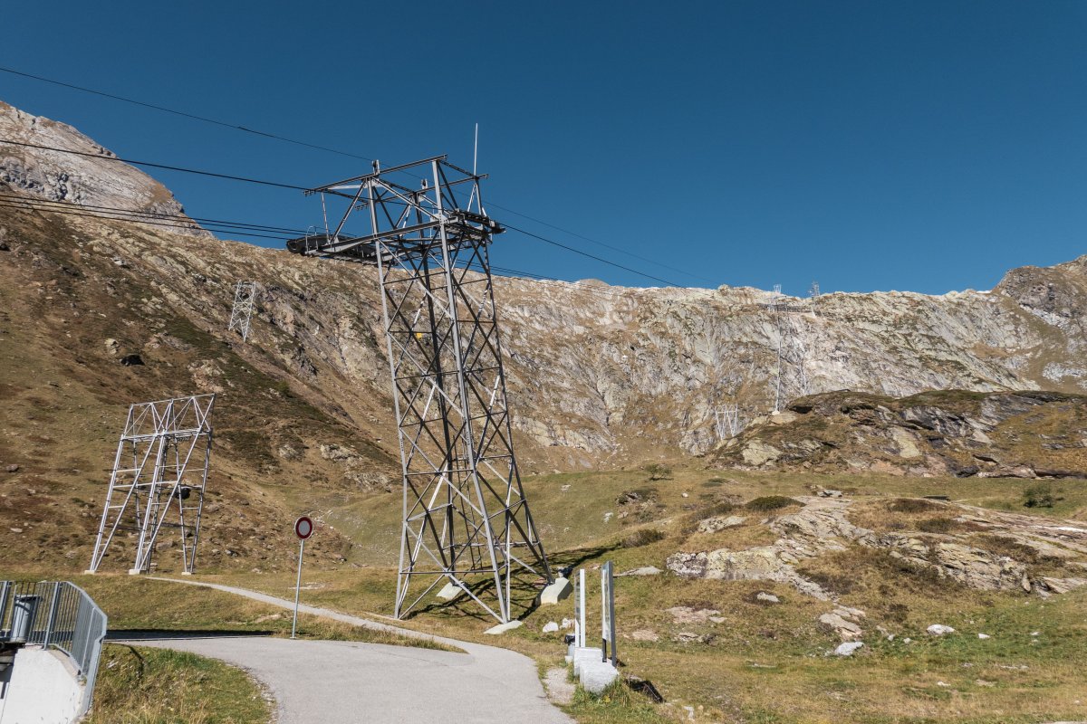 The Robiei-Cortino cable car in San Carlo (built in 1965) spans a distance of 1780 meters, covering an elevation difference between 1905 m and 2227 m. It was built by Habegger. The maximum capacity is 200 people per hour.