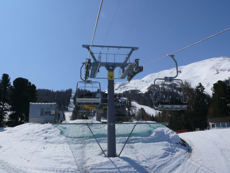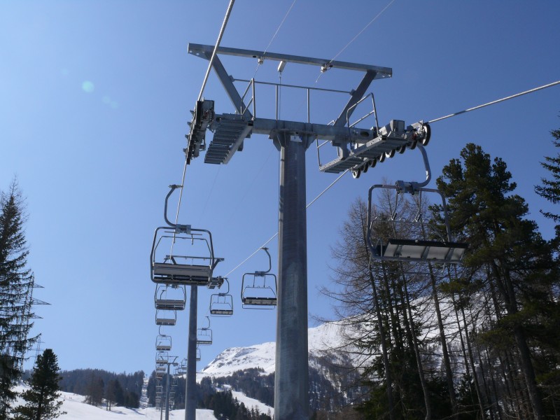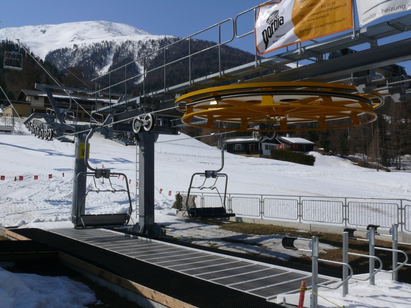 With a length of 1177 meters, the Ried-Chalterboden cable car in Bürchen (Valais) connects stations at elevations of 1568 m and 1871 m. The cable car was built in 2007 by Bartholet. The maximum capacity is 1500 people per hour.