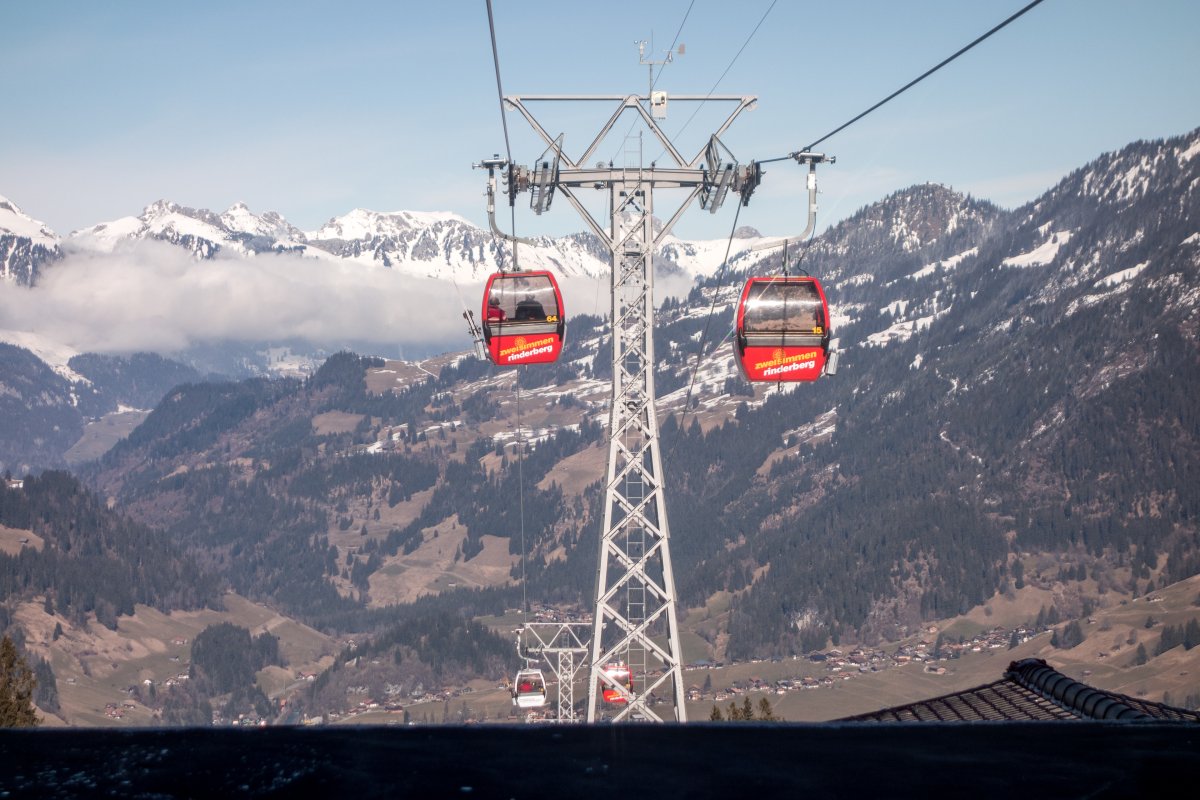 With a length of 2964 meters, the Zweisimmen-Eggweid cable car in Zweisimmen (Bern) connects stations at elevations of 951 m and 1458 m. The cable car was built in 1987 by Von Roll. The maximum capacity is 900 people per hour.
