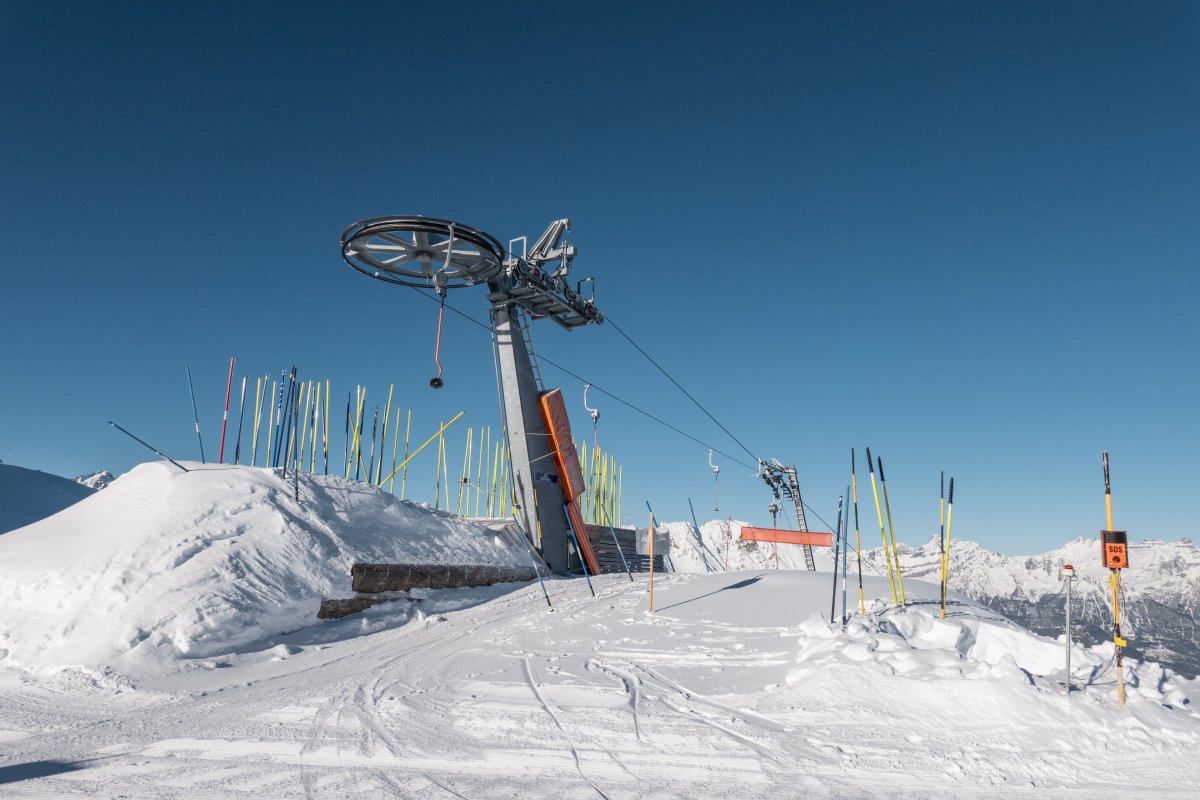 The Le Grand Tsay ropeway in Bruson (Valais) was built in 2020 and connects the valley station located at 2031 m with the mountain station at 2232 m. The length is 617 meters. The ropeway was constructed by the manufacturer Garaventa. The maximum capacity is 704 people per hour.