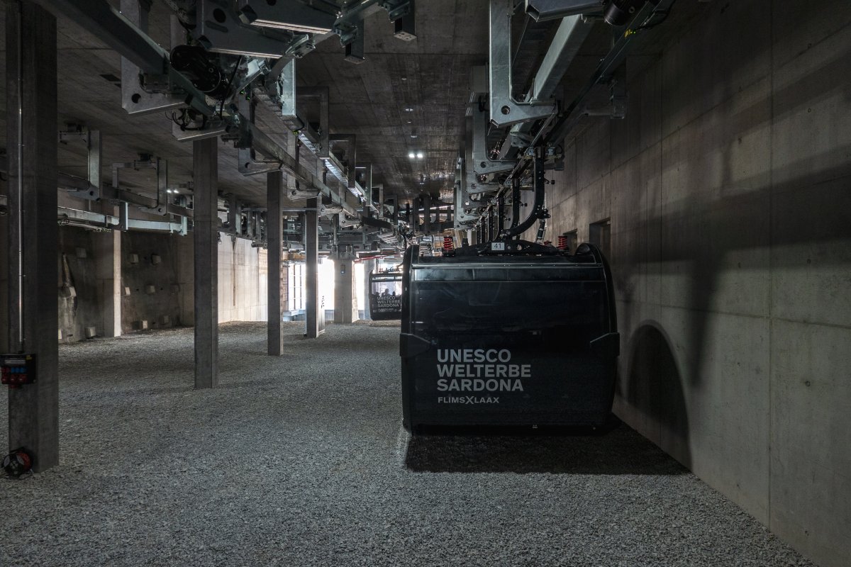 The Startgels-Segnes cable car in Flims (built in 2024) spans a distance of 1449 meters, covering an elevation difference between 1615 m and 2094 m. It was built by Bartholet. The maximum capacity is 1500 people per hour.