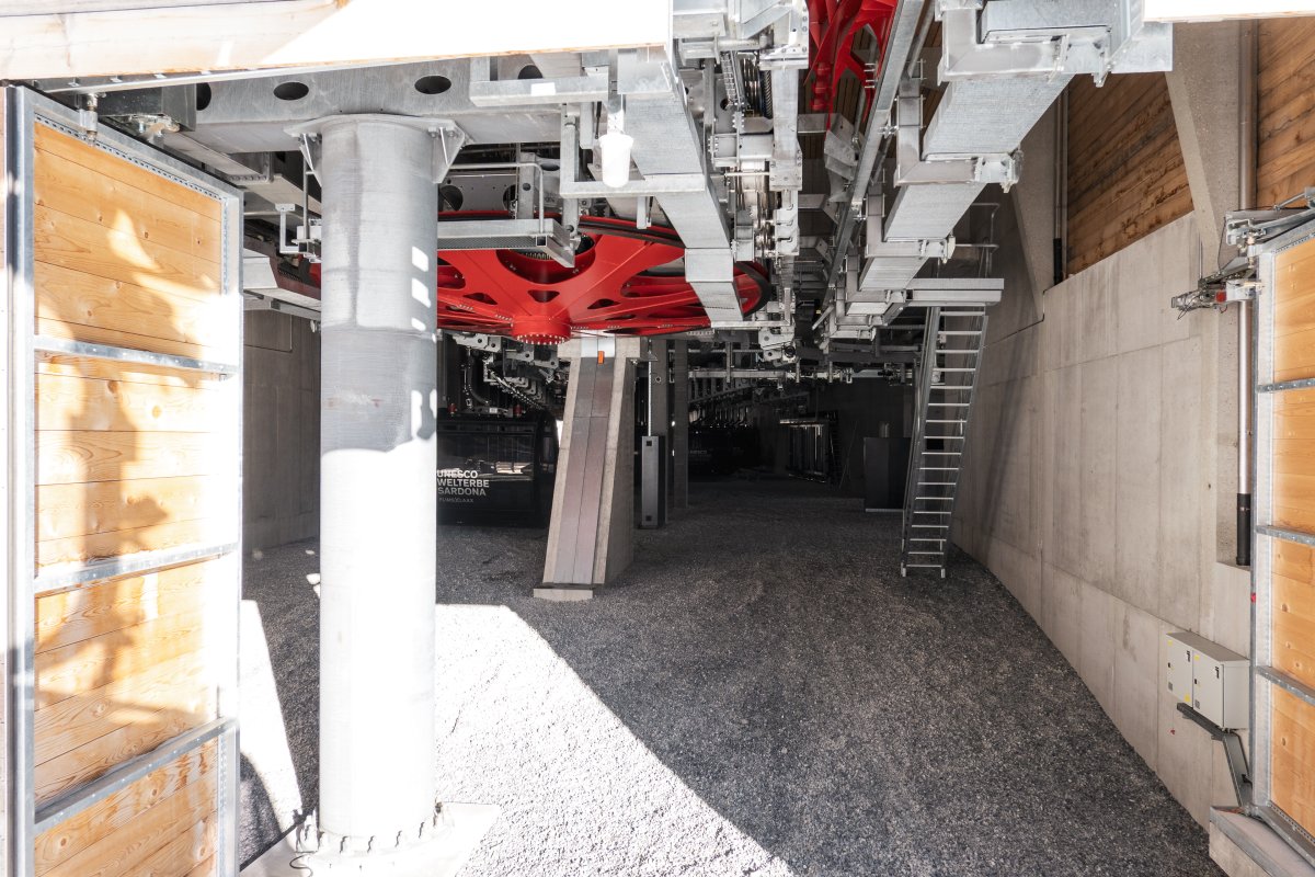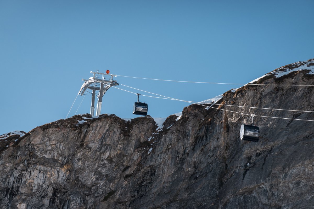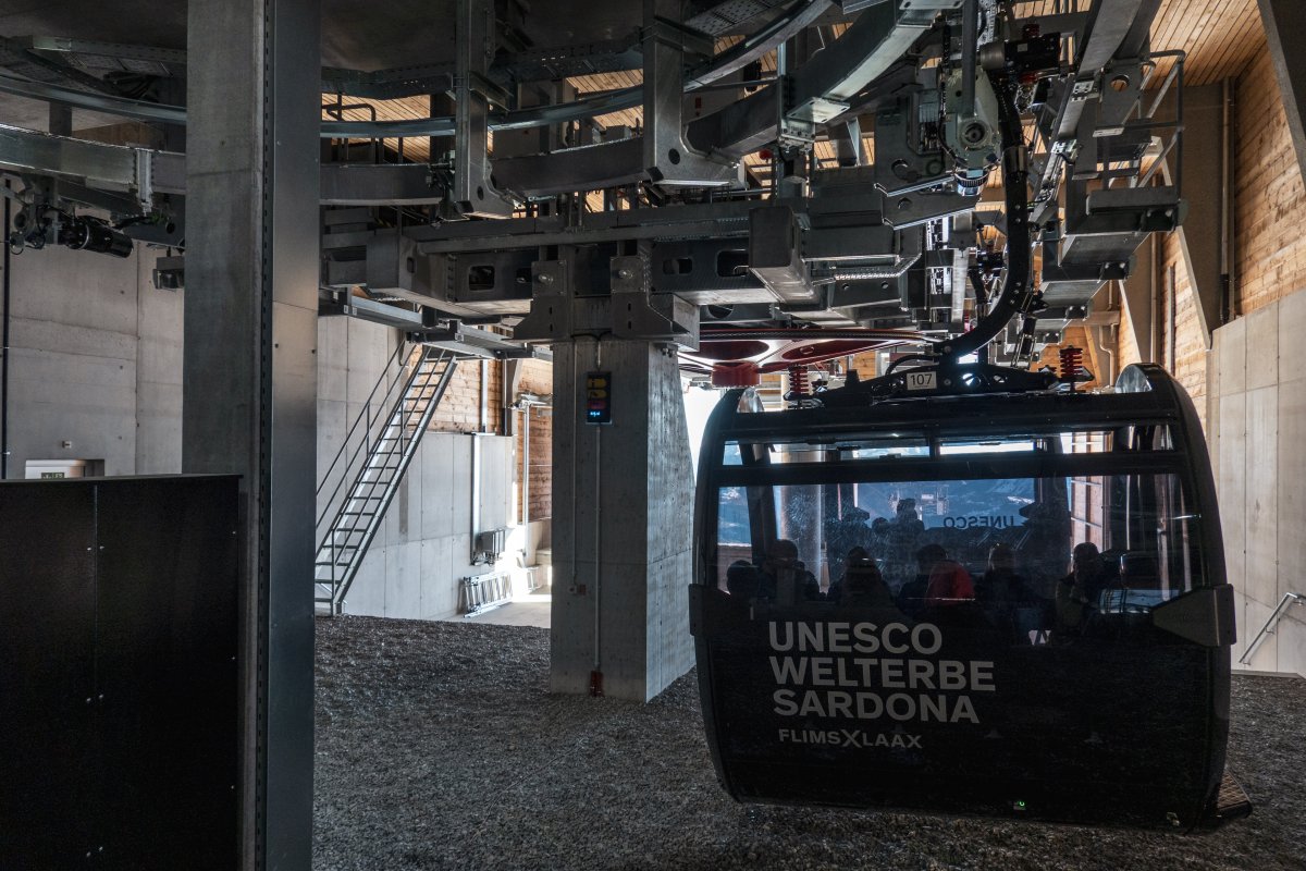 The Segnes-Nagens Sura cable car in Flims (built in 2024) spans a distance of 400 meters, covering an elevation difference between 2094 m and 2186 m. It was built by Bartholet. The maximum capacity is 1500 people per hour.