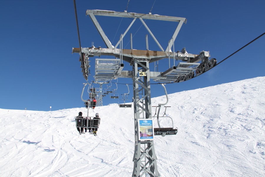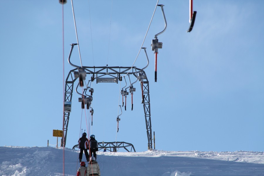 Sesselbahn Tamboalp. Die grösstenteils sehr flache Anlage wurde von Doppelmayr konstruiert, von Garaventa gefertigt und von Städeli aufgestellt, Dezember 2009