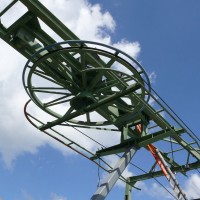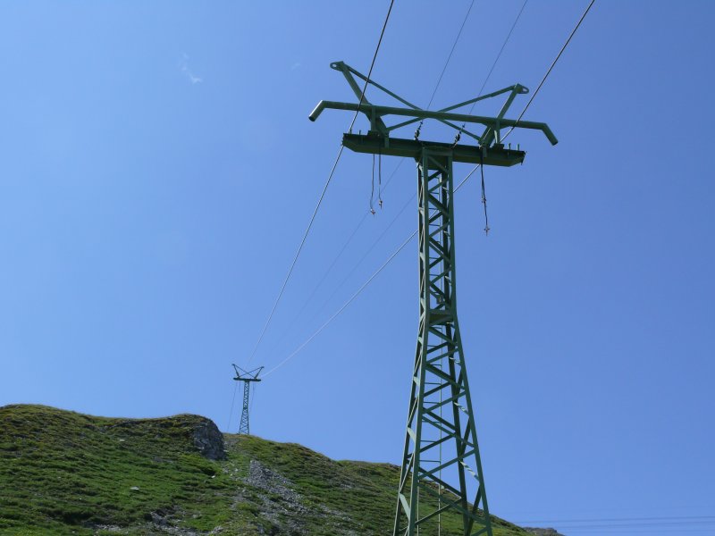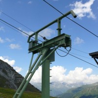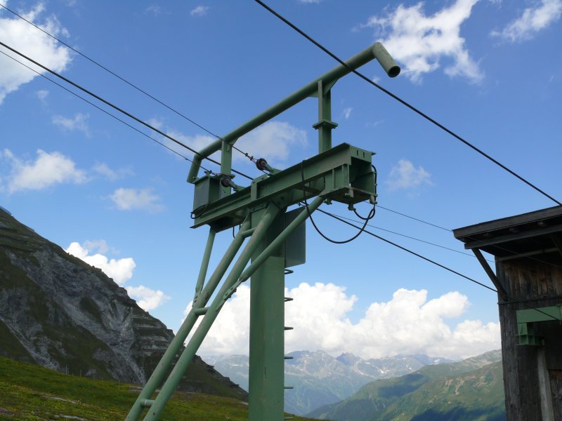 Stütze des Oehler-Schlepplifts ohne Rollenbatterien, da diese gerade wieder in Schuss gebracht werden, Juli 2009