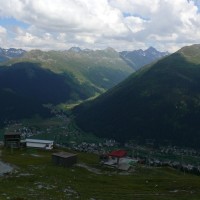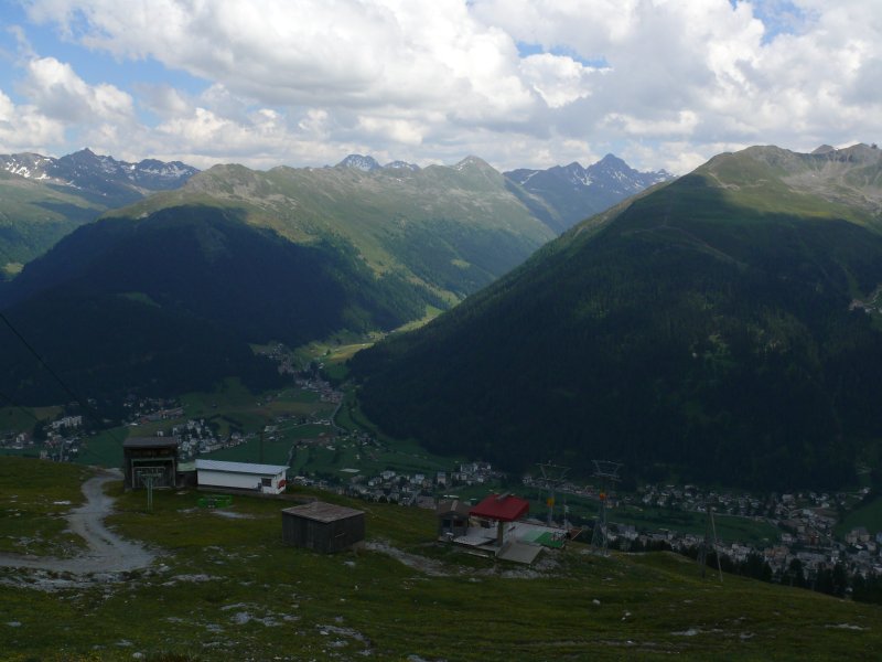 Aussicht von der Talstation des Schlepplifts Strelapass Richtung Süden und Richtung Flüelapass, Juli 2009