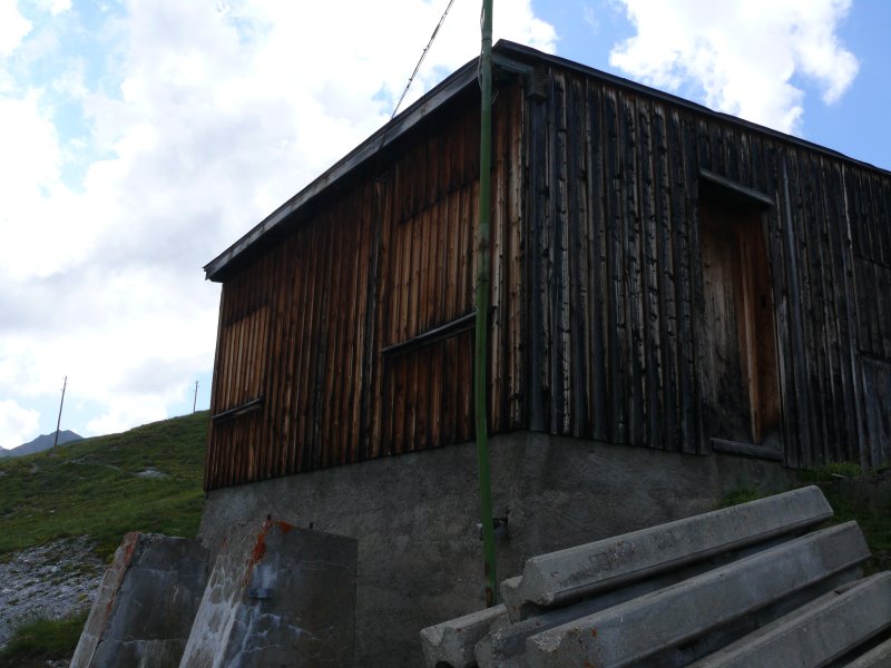 Gebäude, das an einen Schlepplift erinnert. Womöglich handelt es sich dabei um die Station vom einem der ehemaligen Constam-Schlepplifte auf der Schatzalp? Juli 2009