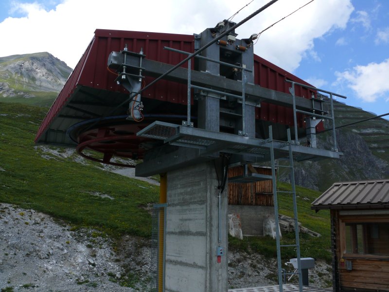 Die Bartholet-typische Version der Bergstation mit Unterflurantrieb, Juli 2009