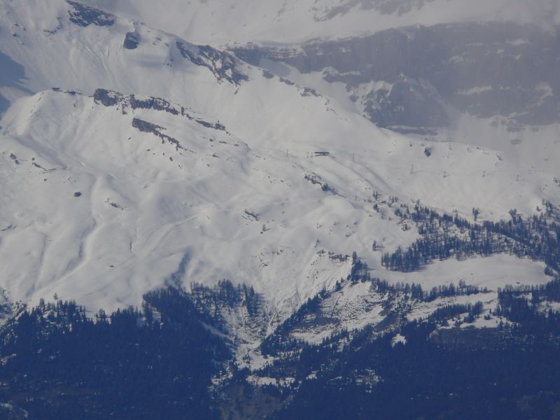Zoom ins Skigebiet von Anzère, links der Pas de Maimbré, März 2008