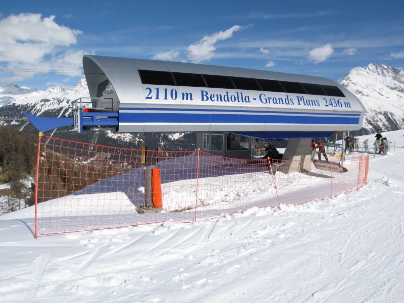 Talstation der Sesselbahn Grands Plans, März 2008