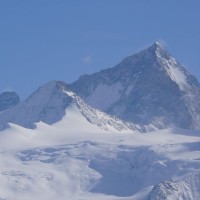 Zoom zu einem schön vergletscherten Berg, links davon das Matterhon (?) März 2008