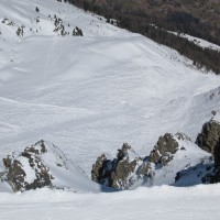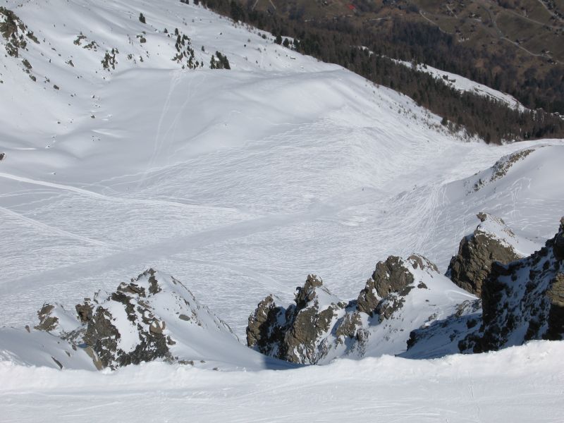 Die Piste du Chamois, Verbindung zwischen den Skigebieten Zinal und Grimentz, März 2008