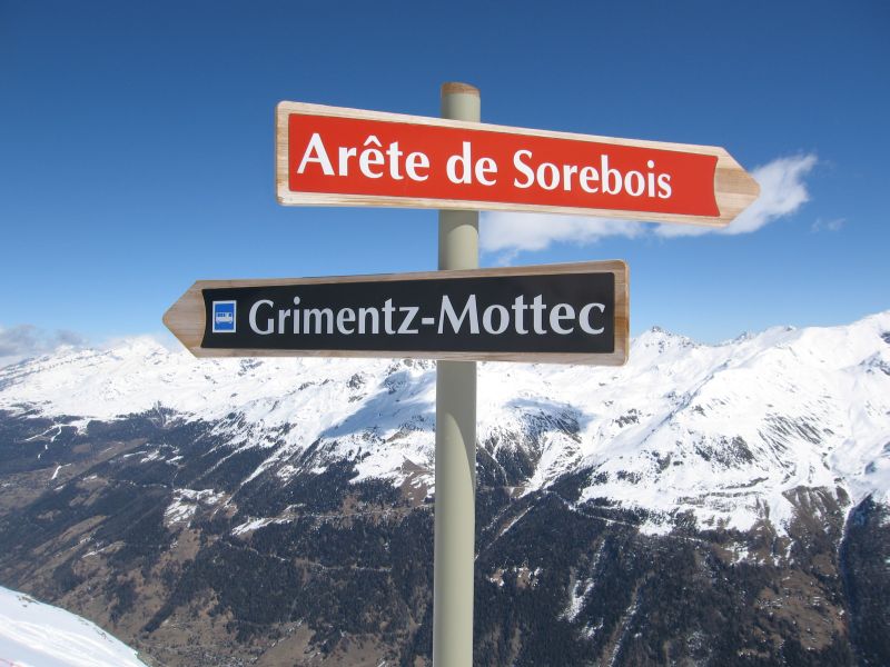 Wegweiser am Beginn der Piste du Chamois, März 2008