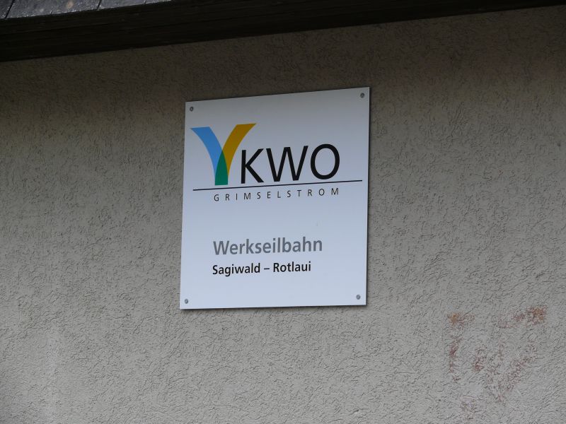 An der Grimselpassstrasse trifft man zunächst auf die Werksseilbahn Sagiwald-Rotlaui. Diese ist nicht öffentlich, Oktober 2008
