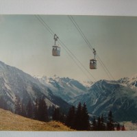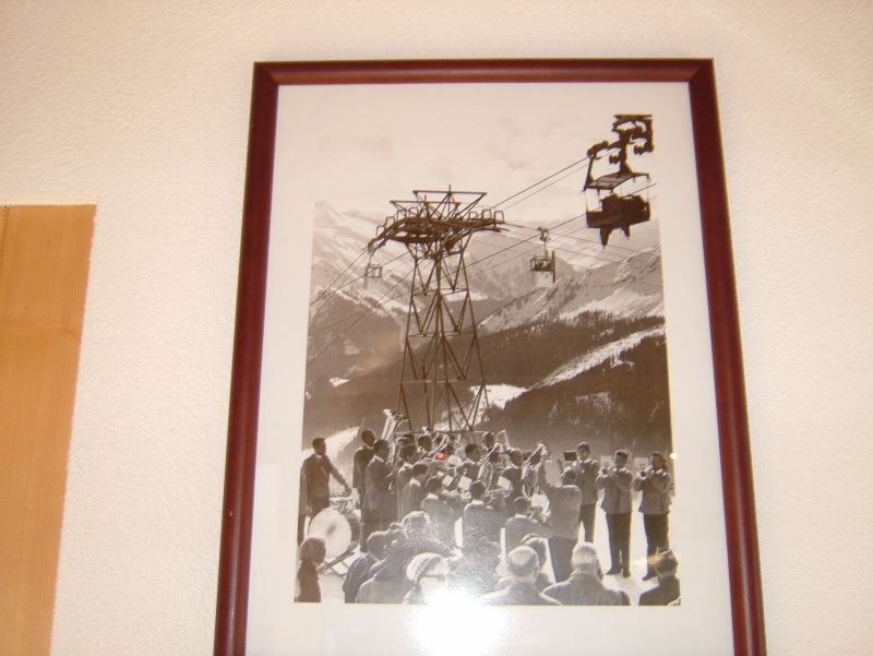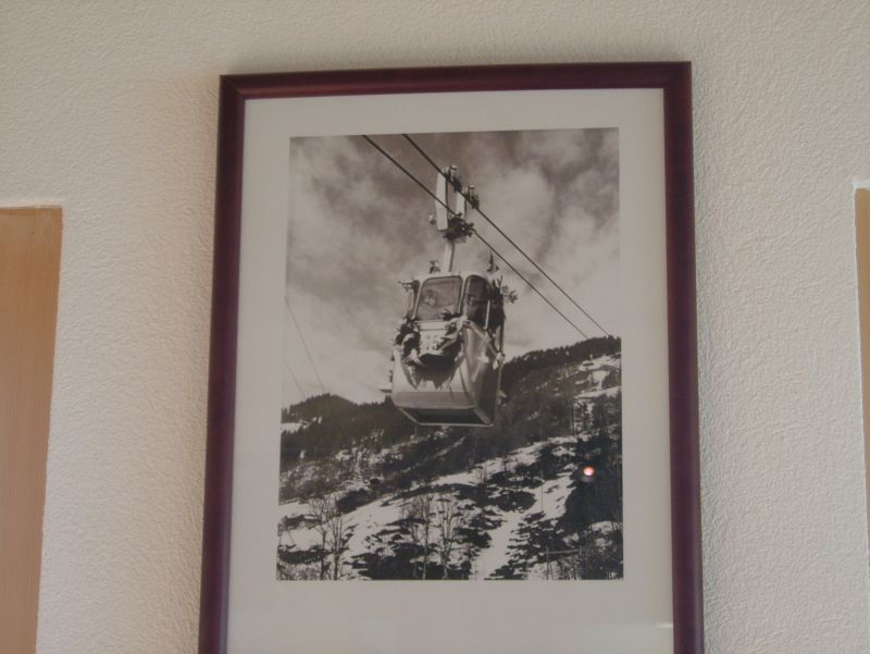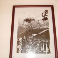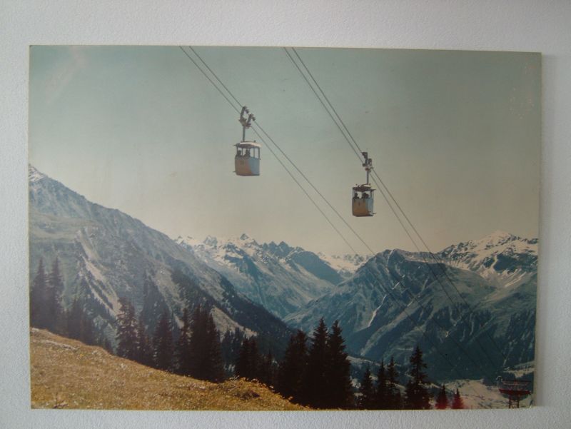 Foto der alten Zweiseilumlaufbahn Klosters-Madrisa von Bell, abfotografiert im Bergrestaurant Saaseralp, Februar 2007