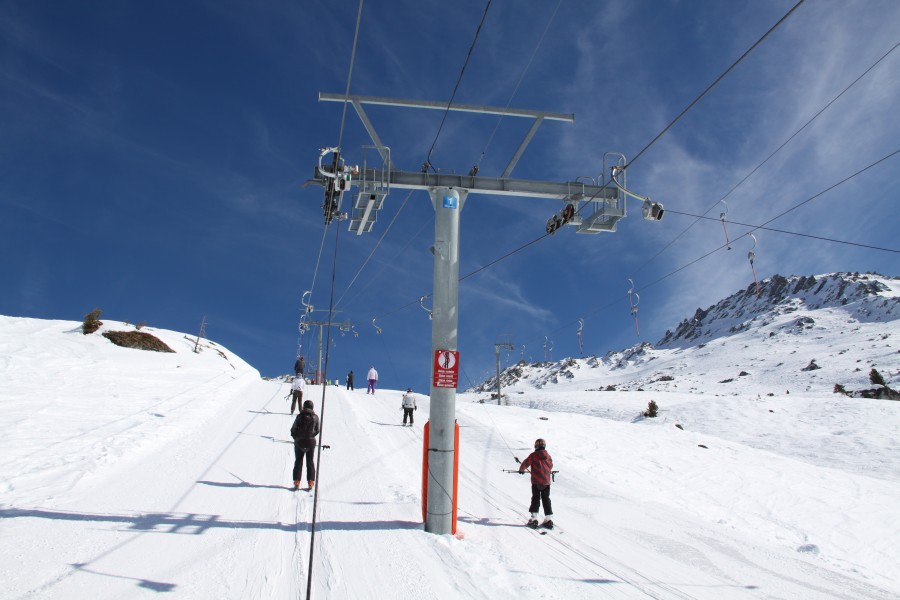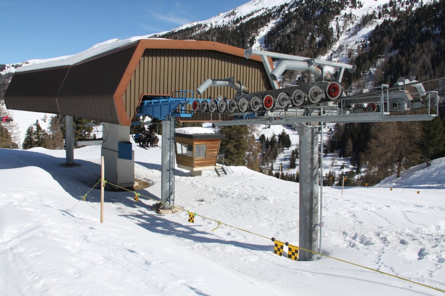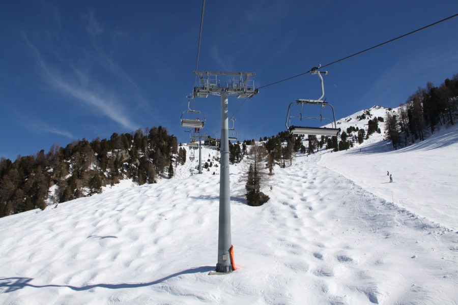In die bestehende Dreiecksseilführung baute Doppelmayr 2002, also fast 30 Jahre nach dem ersten Schlepplift, als Entlastung eine zweite Anlage, Februar 2012