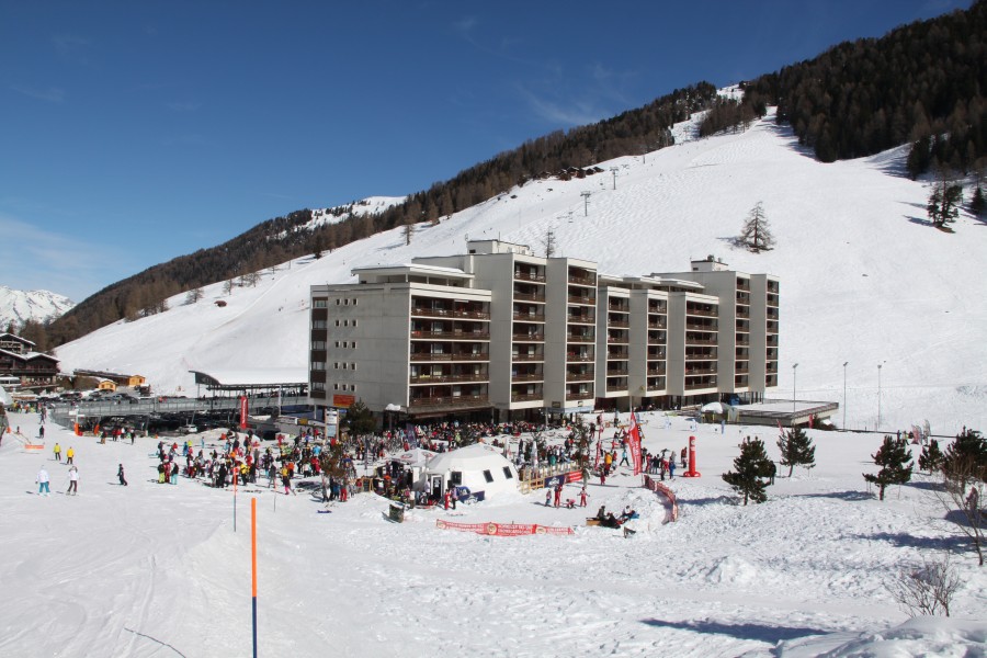 Hotelkomplex in Siviez, ein zwar aus heutiger Sicht unschönes, aber den Stil der 70er Jahre bestens repräsentierendes Zeitdokument, Februar 2012