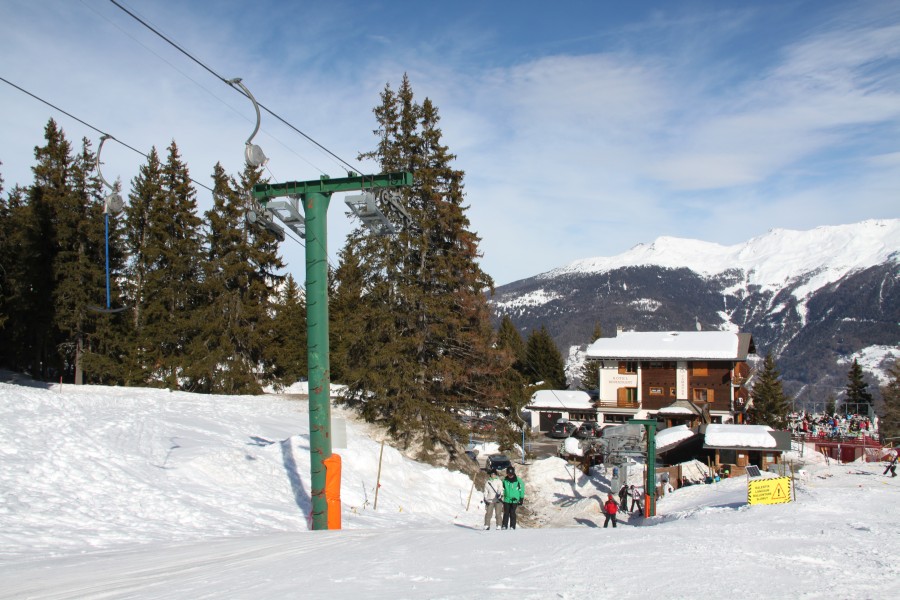 Parallel dazu, aber etwas länger die Baco-Poma-Sesselbahn Les Collons-La Trabanta, Februar 2012