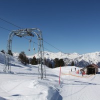 Talstation des Poma-Schlepplifts La Combe, der eine eigene Geländekammer mit 500 Metern Höhendifferenz erschliesst, leider aber sehr langsam ist, März 2012